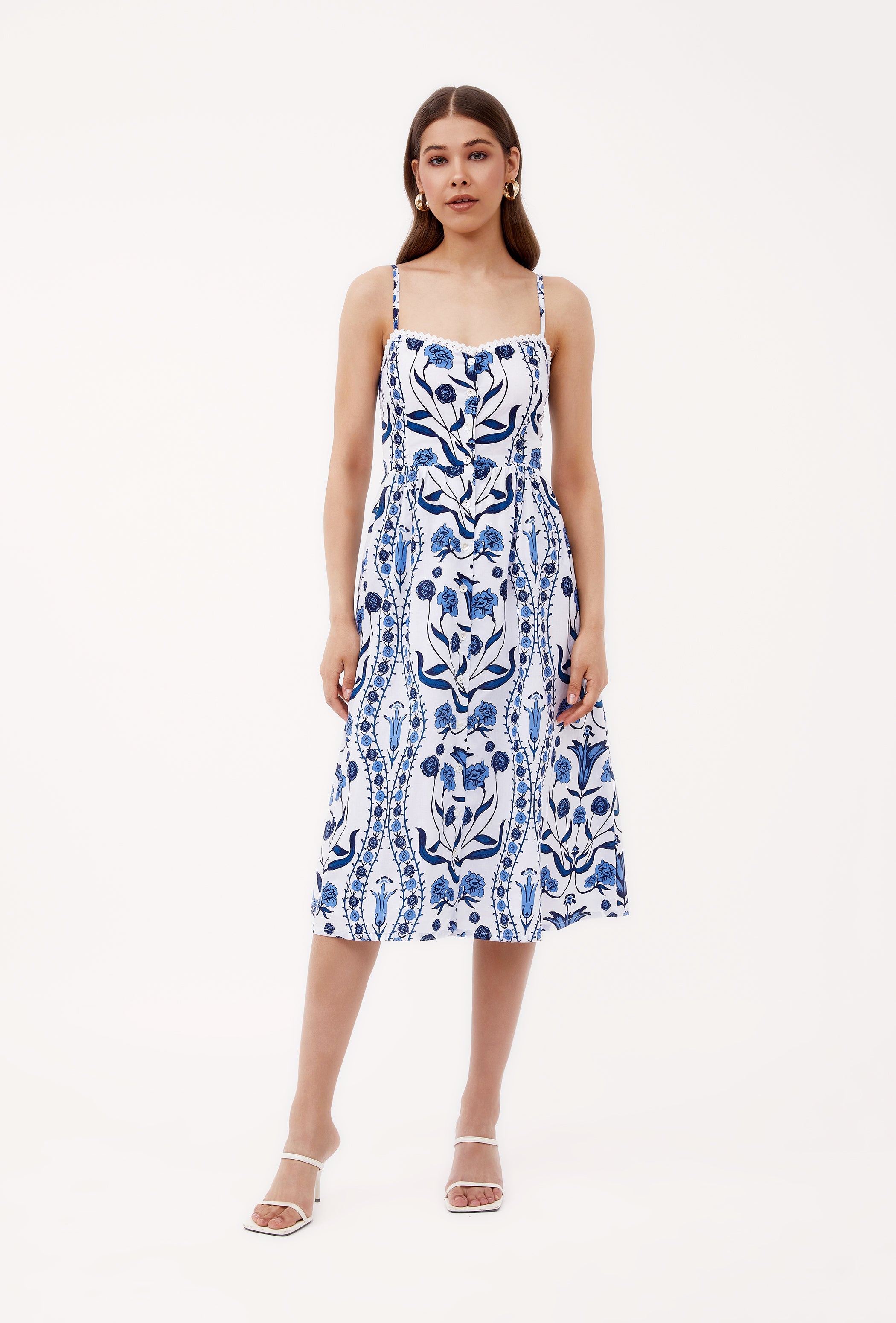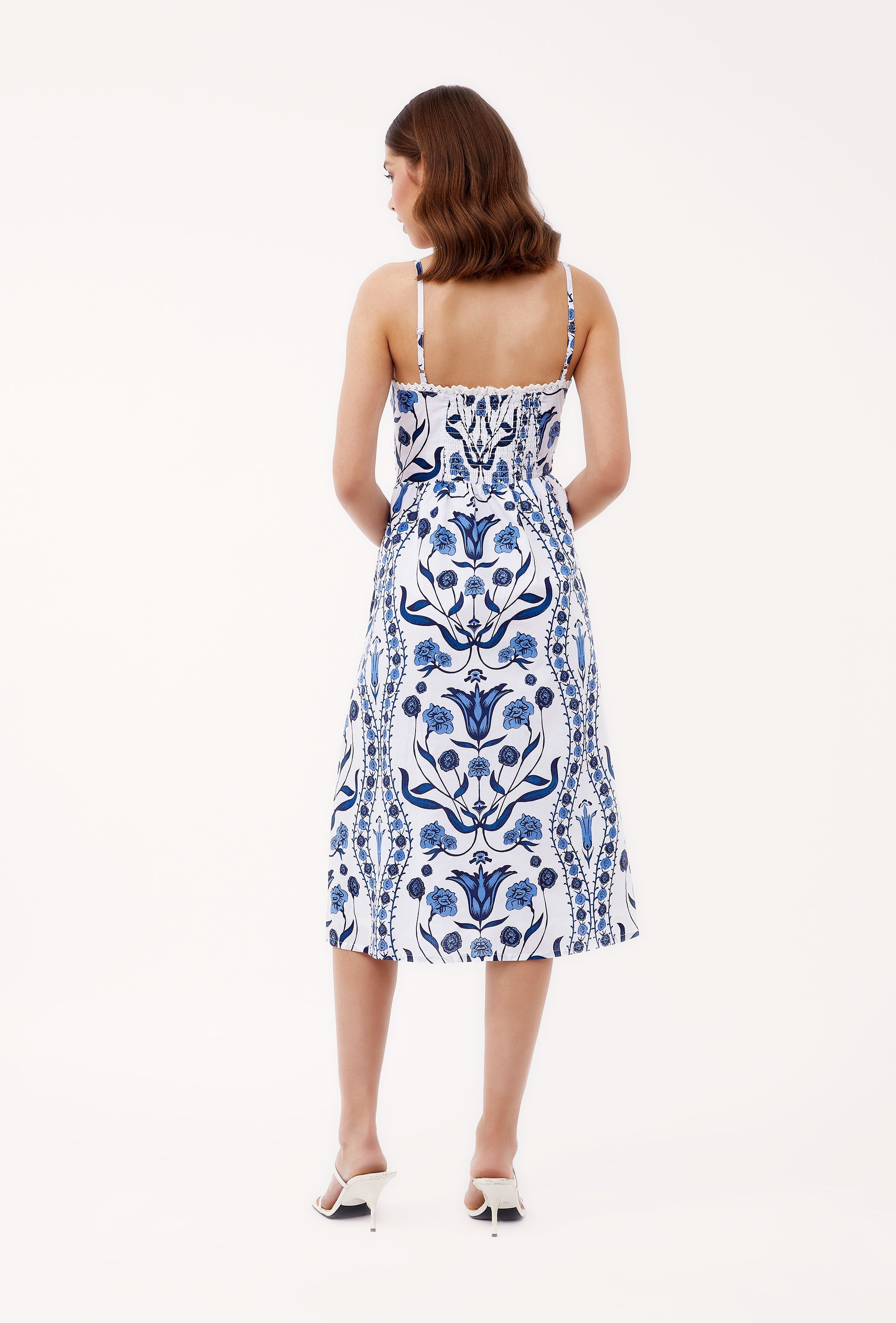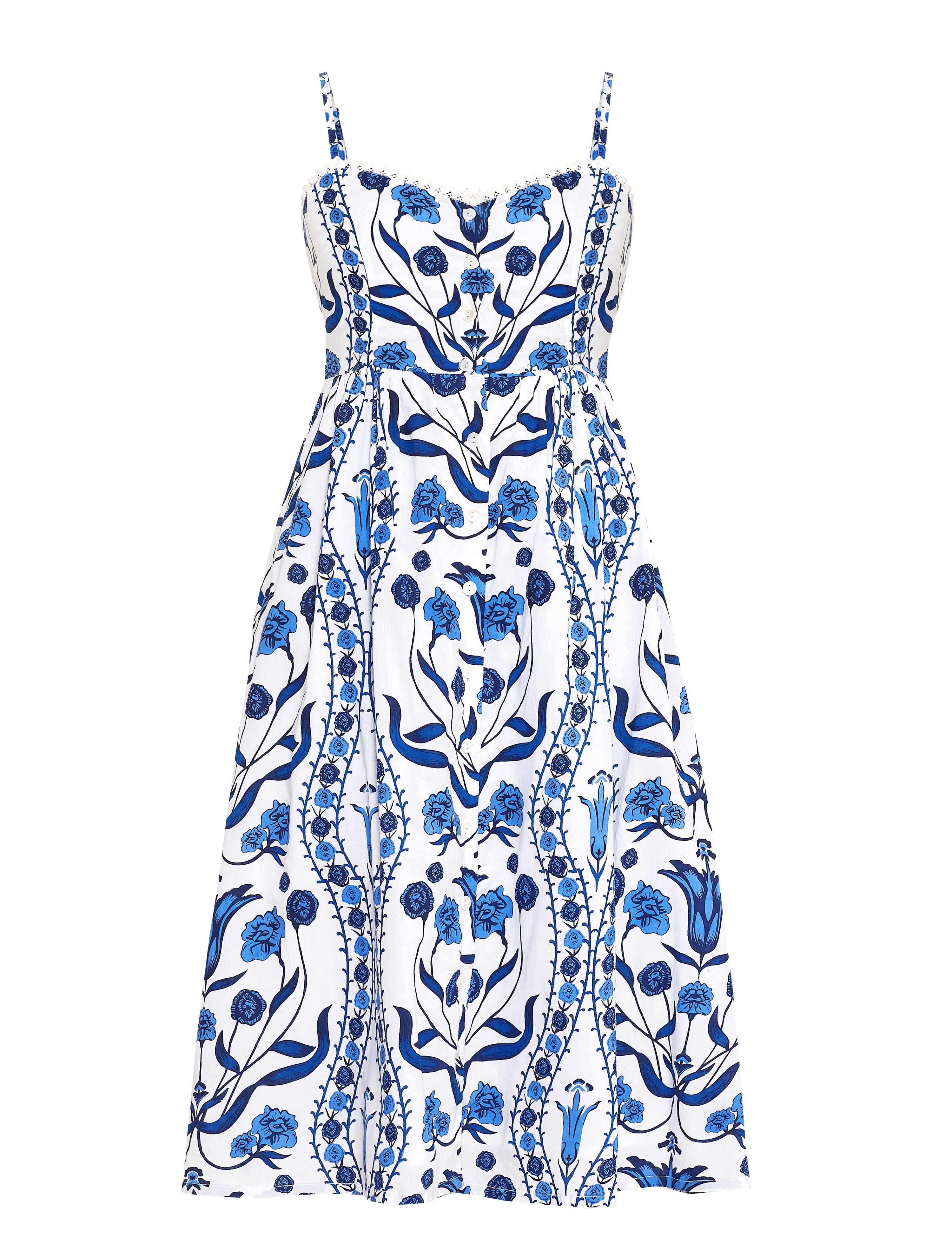 The Louise dress channels relaxed old world charm featuring a sweetheart neckline, button-down front, and an A-line silhouette that effortlessly flatters your figure. With adjustable shoulder straps, hidden pockets and a smocked back, this dress ensures a perfect fit every time. Louise made from a soft, breathable cotton cambric fabric that will keep you cool on a hot summer day. This floral print embodies an Italian countryside summer, running through flower-filled fields, exuding freedom and joy.