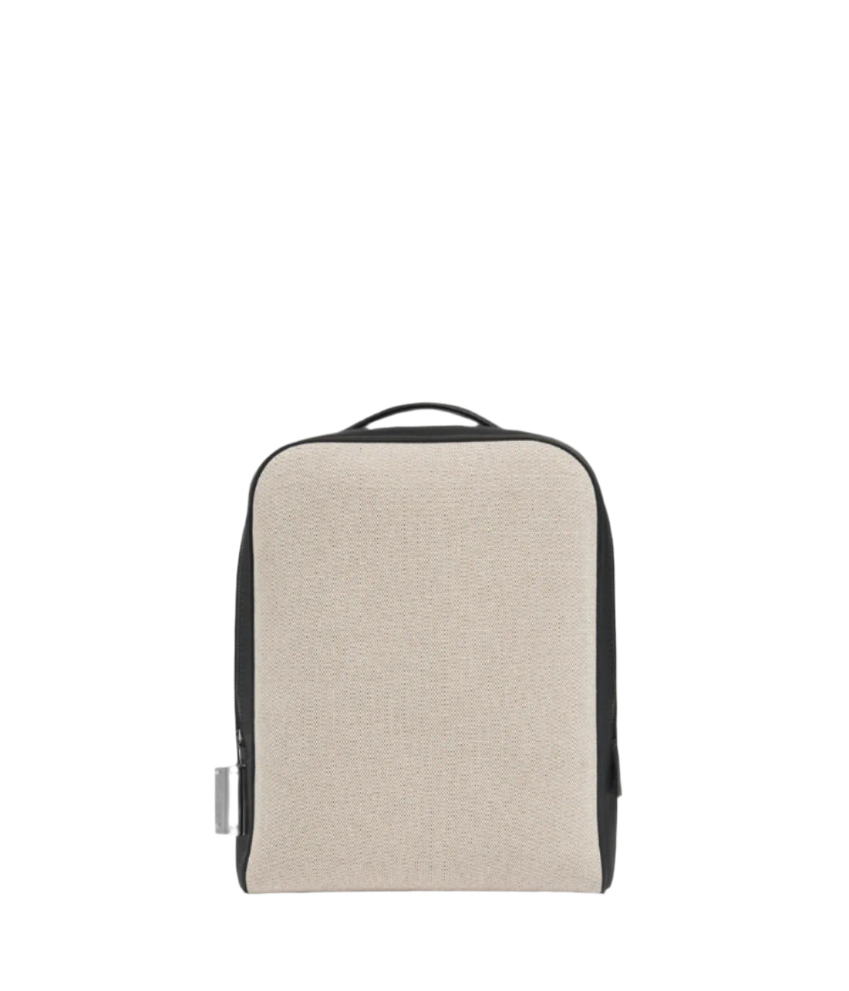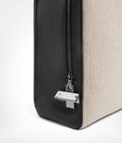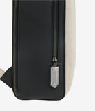 Backpack in canvas with black leather trim and intreccio shoulder straps. Double zipped compartments, iInterior pocket, ruthenium zips, Aviteur prism clasp.
