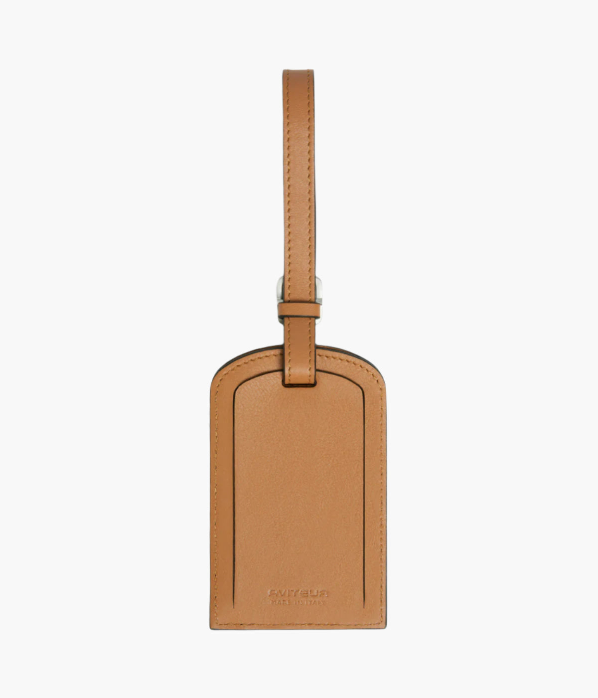 Luggage Tag in calfskin with Paglia di Vienna weave and brass buckle in anodized palladium.