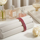 Illuminate your wrist with the enchanting allure of our Gemstone Tennis Bracelet, elegantly crafted in Rose Plated Sterling Silver. This bracelet features shimmering Rhodolite gemstones set in a timeless tennis bracelet design, exuding feminine charm and sophistication. With a length of 7.25 inches, it offers a comfortable fit for most wrists, making it an ideal accessory for any occasions. Elevate your ensemble with this exquisite bracelet, guaranteed to add a touch of romance and elegance to any outfit.