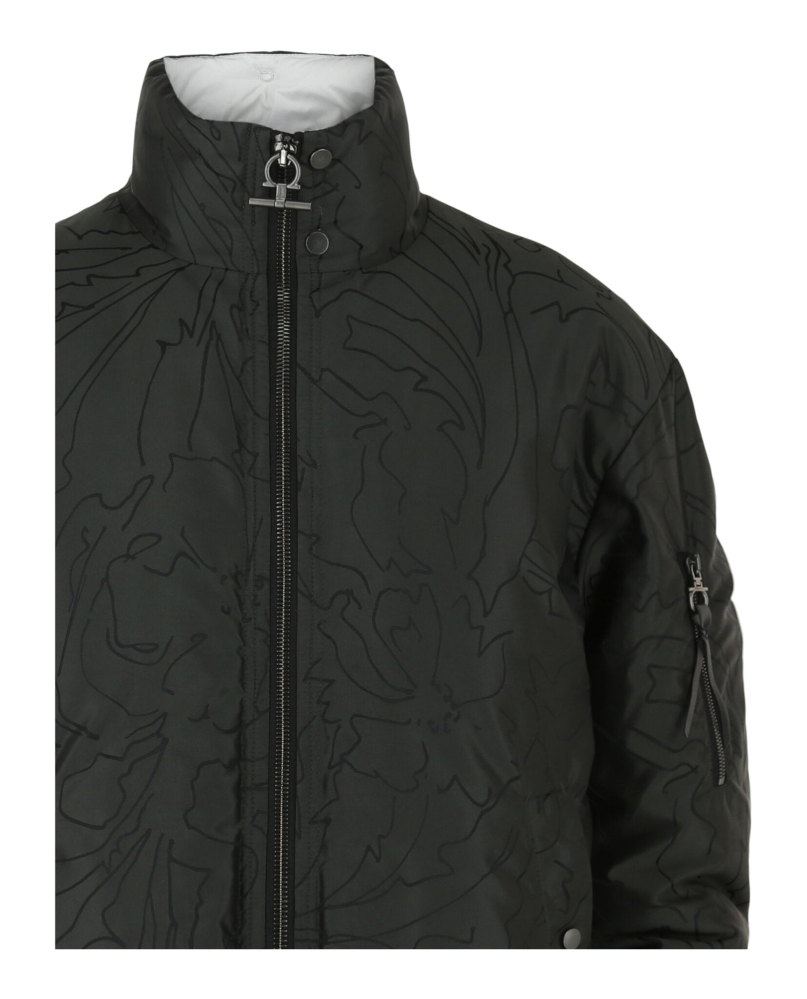- Allover abstract print; Gunmetal hardware; Gancini zipper pulls; Two front slash pockets; One zip pocket at the sleeve