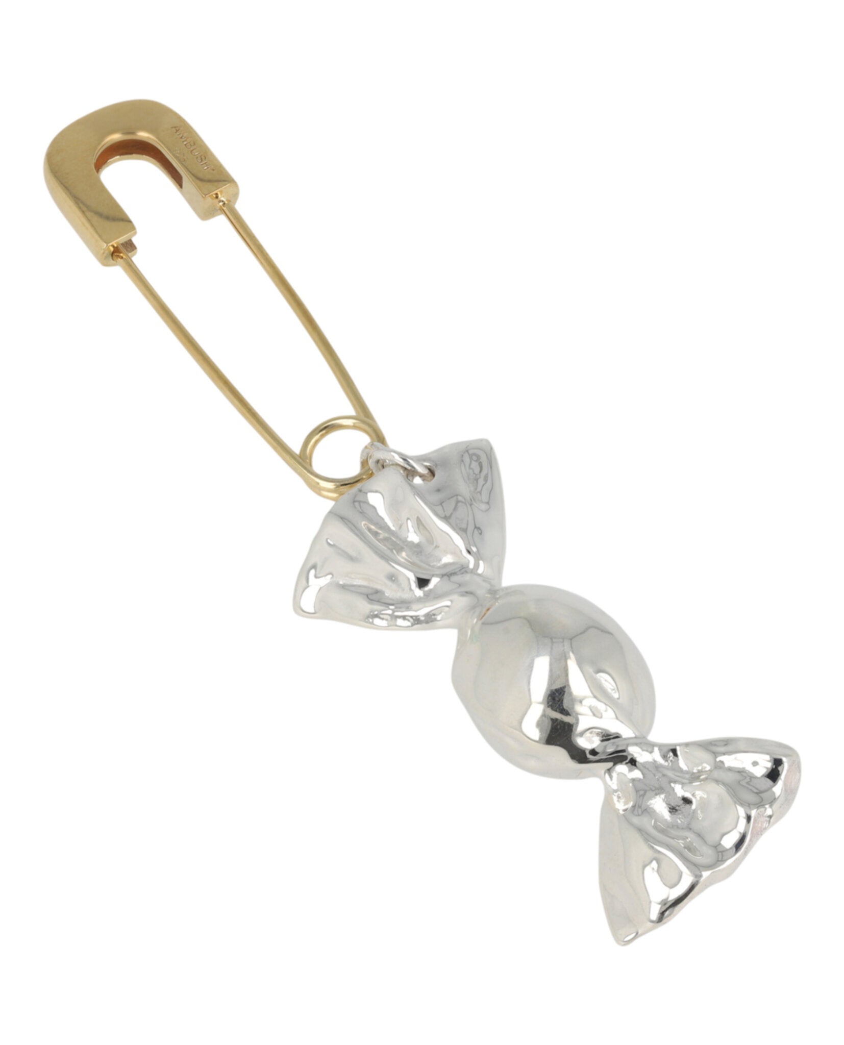 Make a bold statement with the Candy Charm 2 Single Earring from AMBUSH. This striking piece features a playful candy-shaped drop with distinctive safety pin detailing, crafted from premium sterling silver with multitonal hardware and engraved logo accents.