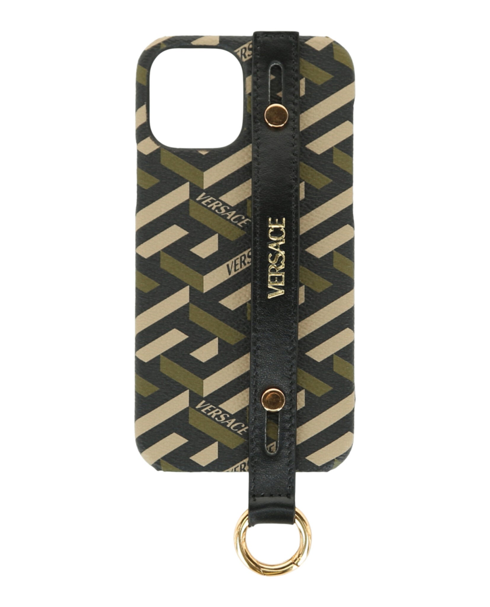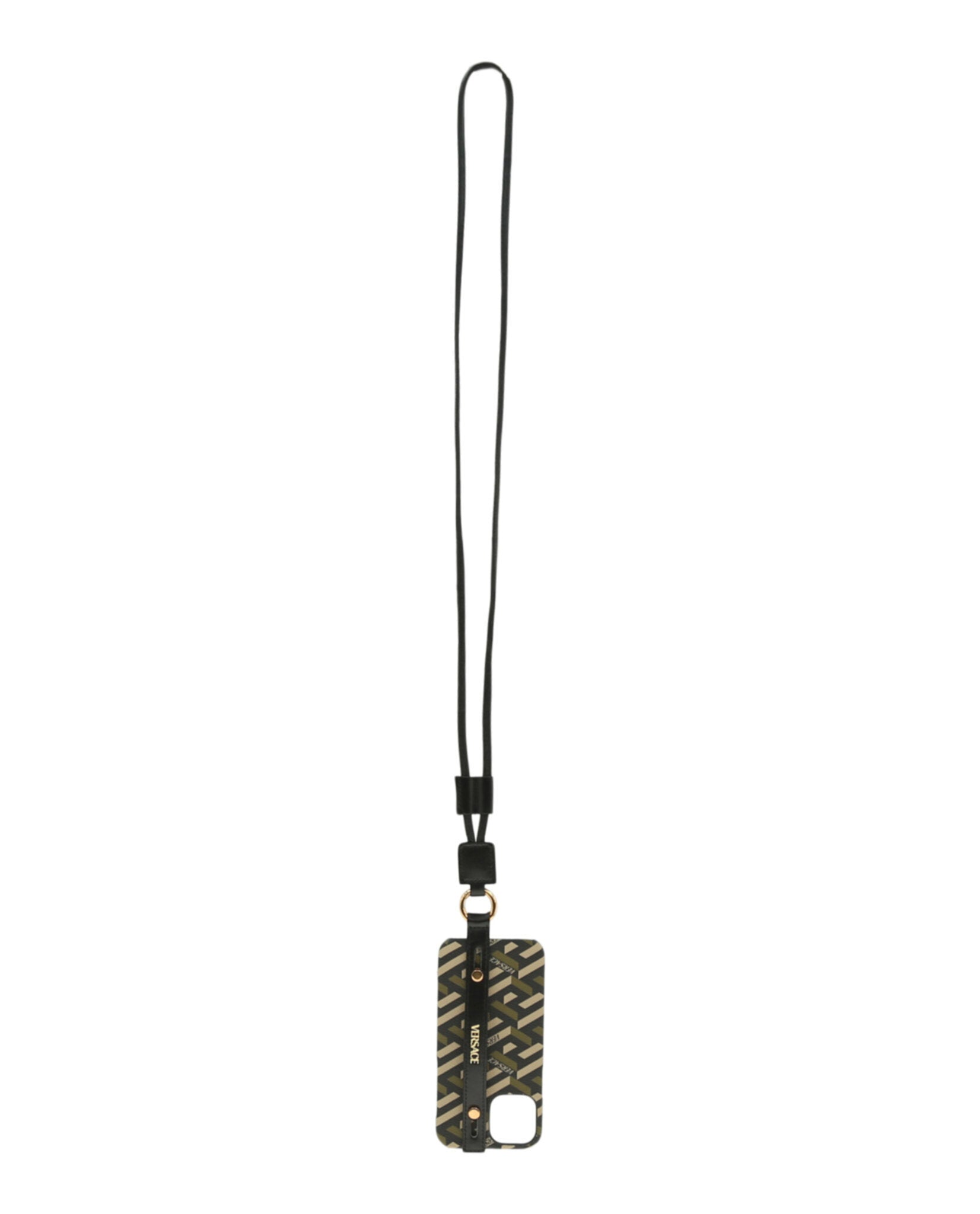• All over Greca print; Hand strap at the back of the case; Detachable lanyard strap
