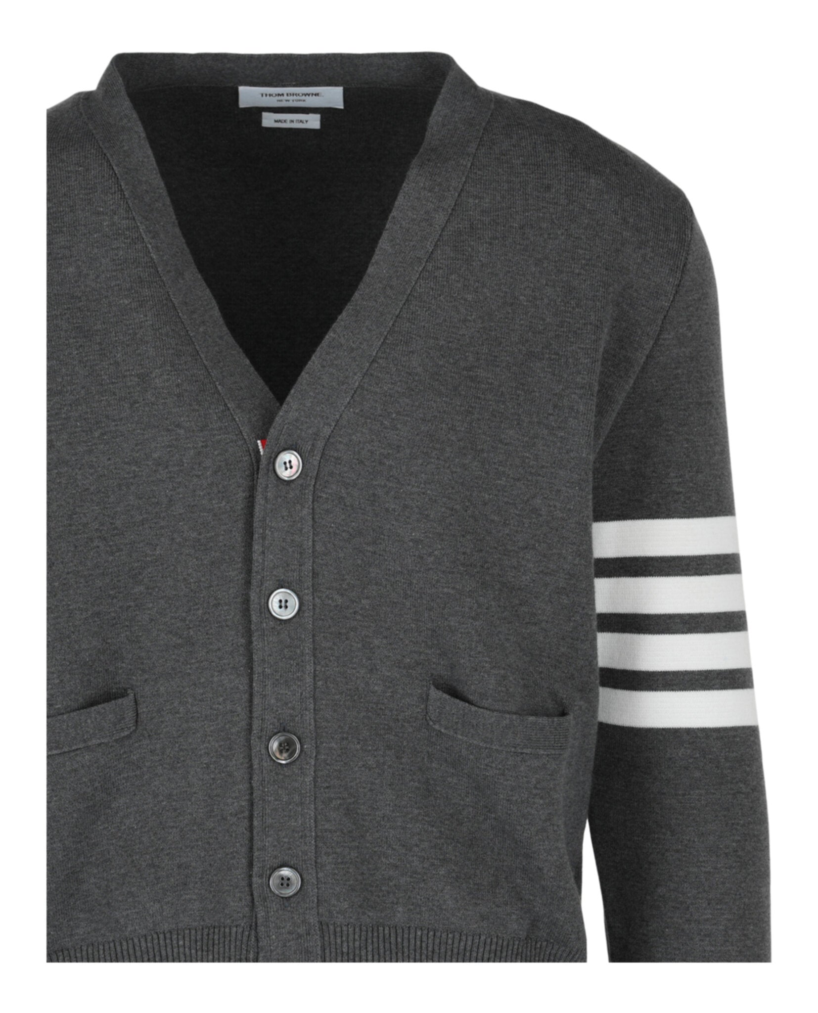 - Front button closure with striped grosgrain placket; 4-bar stripe detail at the left sleeve; Buttoned side vents and cuffs with signature striped grosgrain trim; Signature striped grosgrain loop tab at back of neck; Two front welt pockets