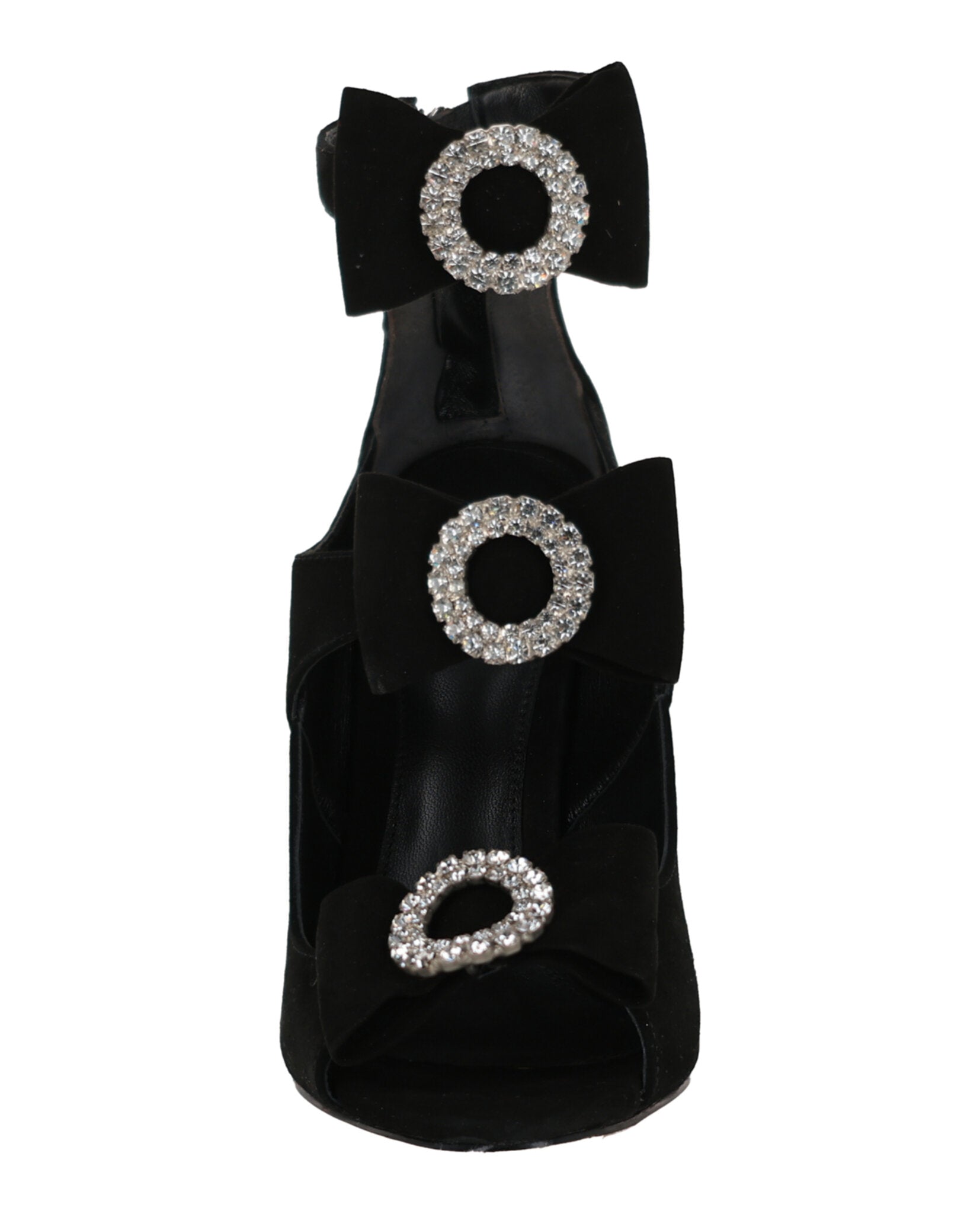 - Suede construction; Crystal-embellished round pendants