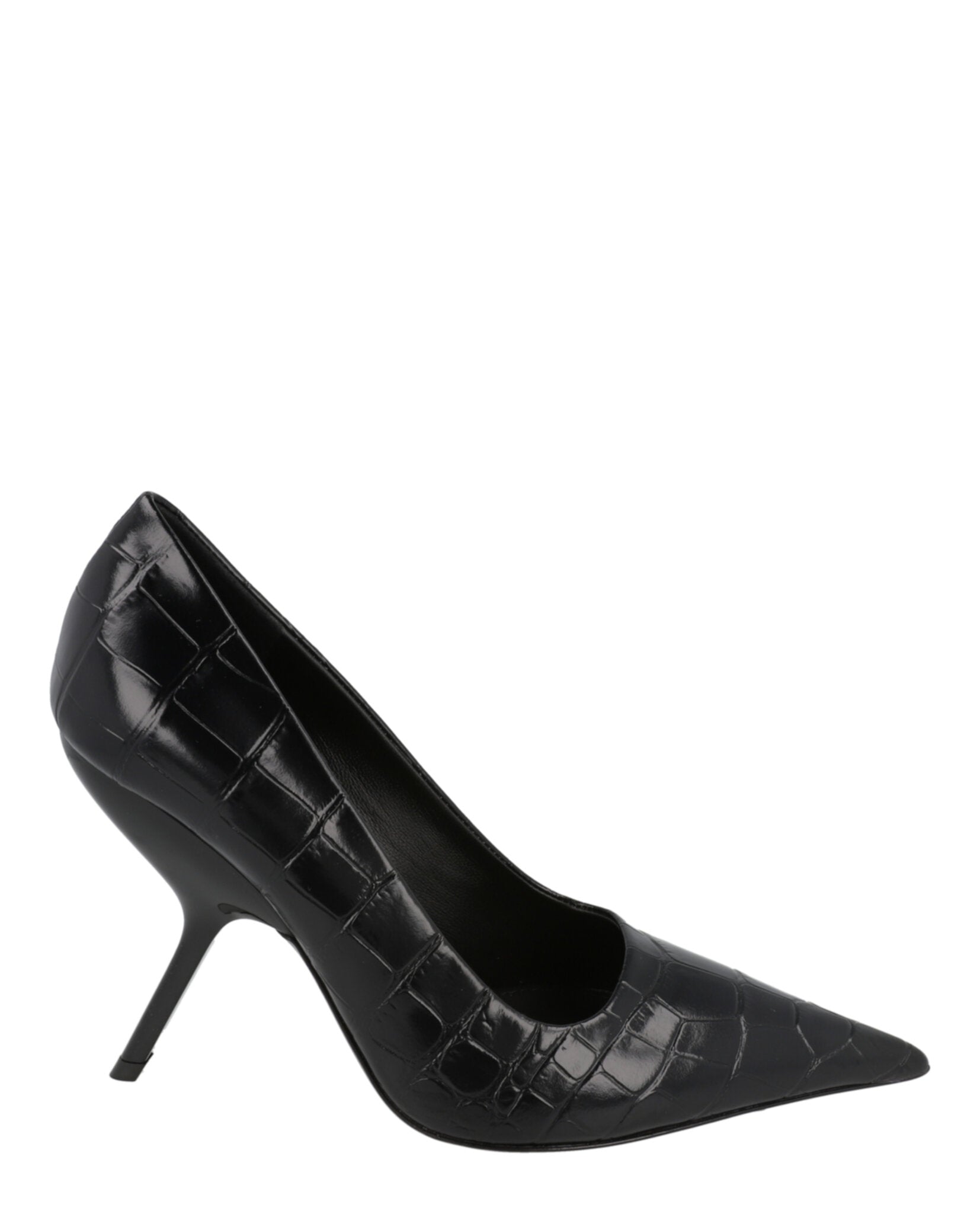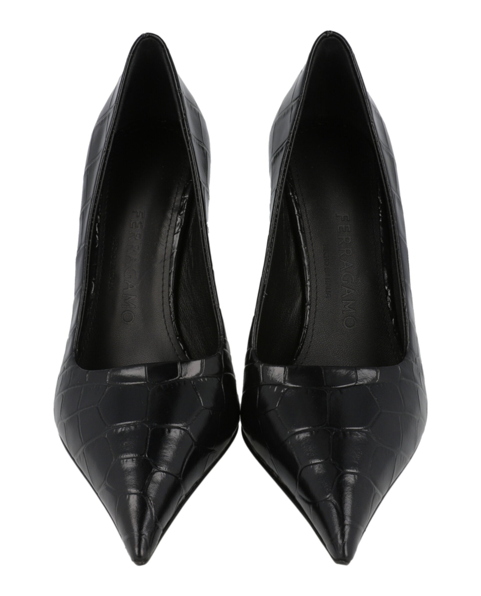 Elevate your wardrobe with the Eva Crocodile Leather Pumps from Ferragamo. These sophisticated Italian-crafted pumps feature a luxurious croc-embossed calfskin leather upper and a distinctive curved 4-inch heel that adds modern elegance to any ensemble.