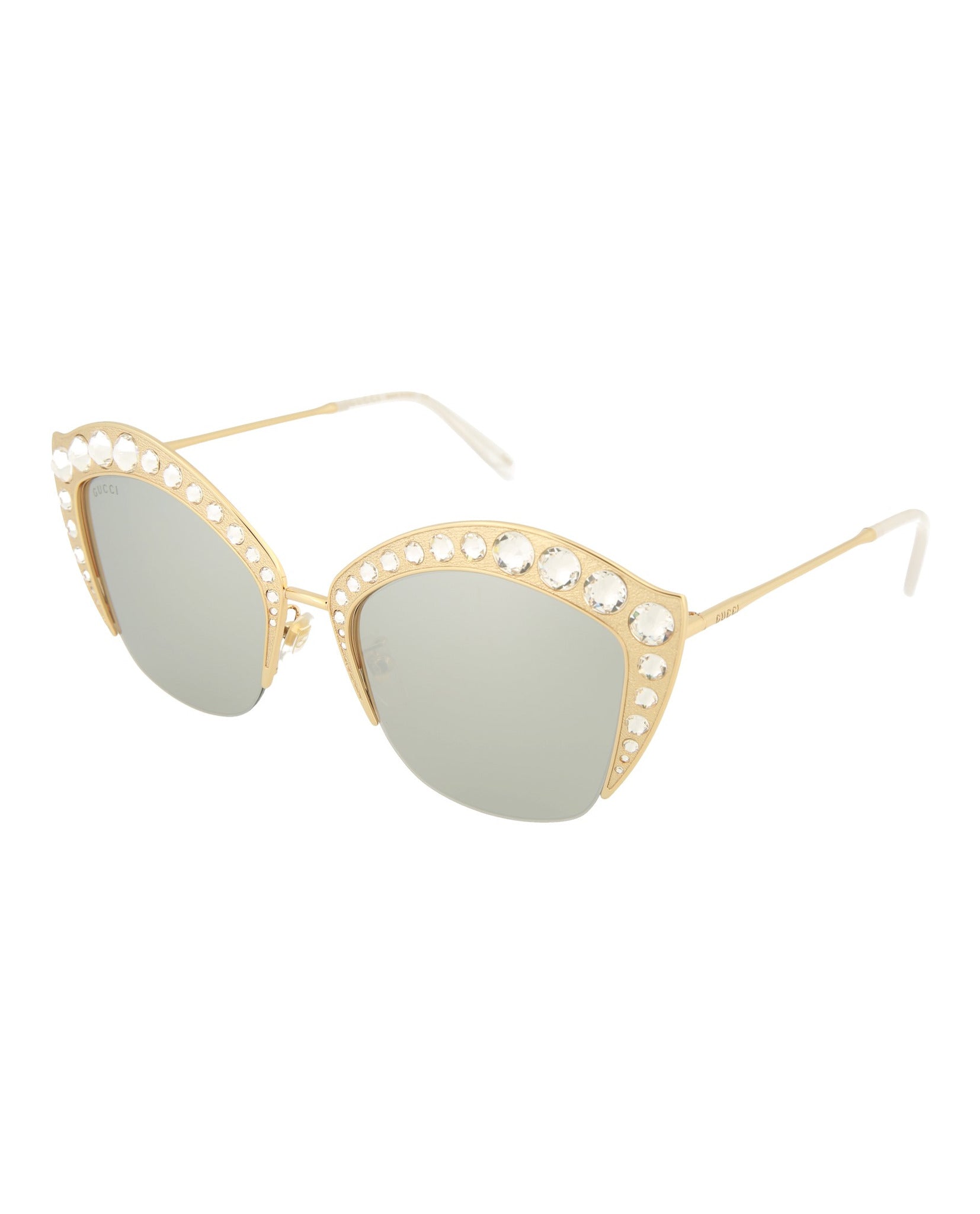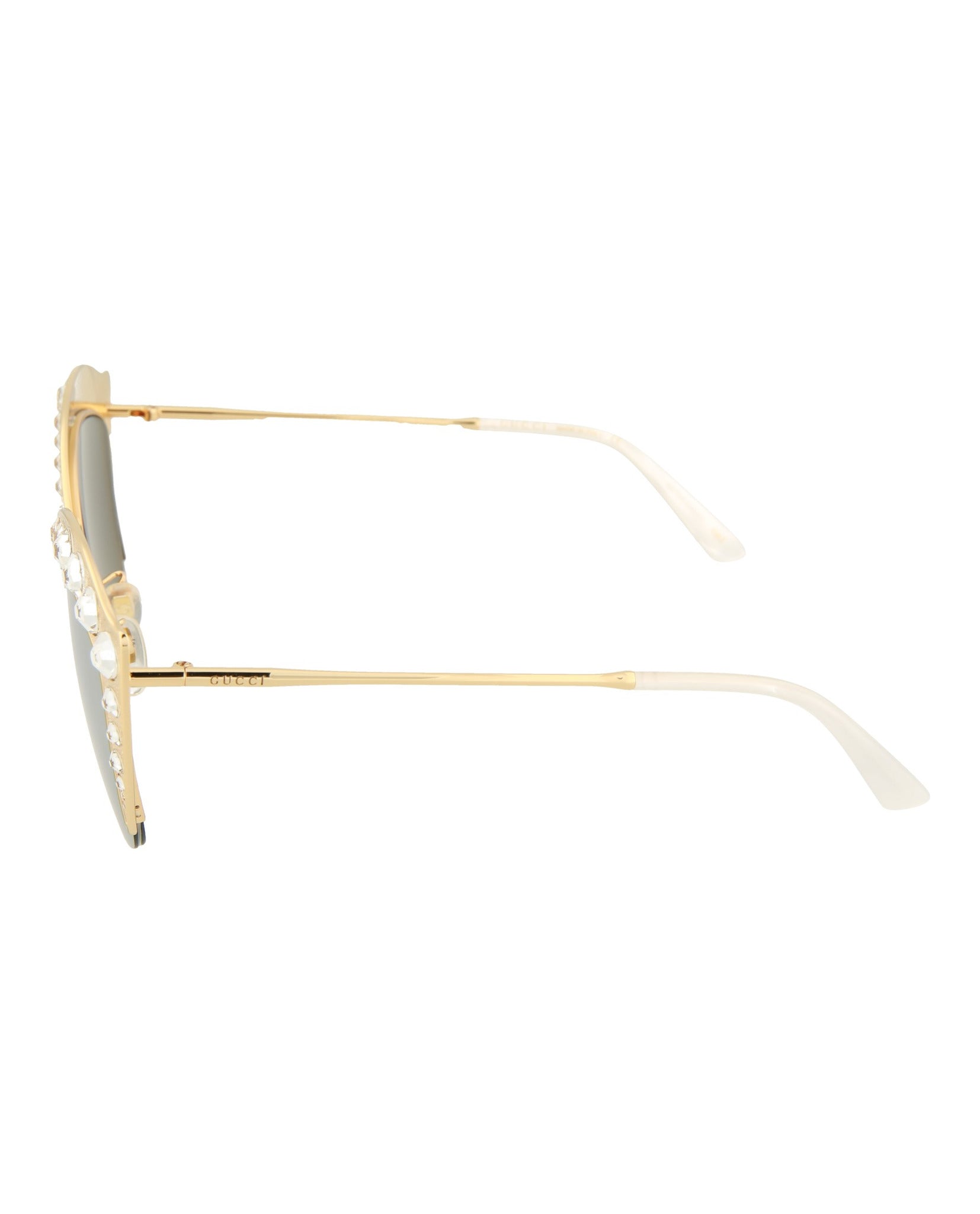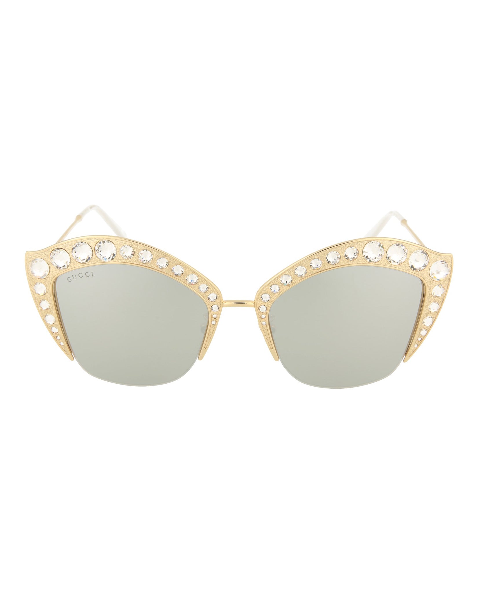 Elevate your everyday look with these stunning Gucci Cat Eye-Frame Sunglasses featuring luxurious crystal embellishments around the frame.
