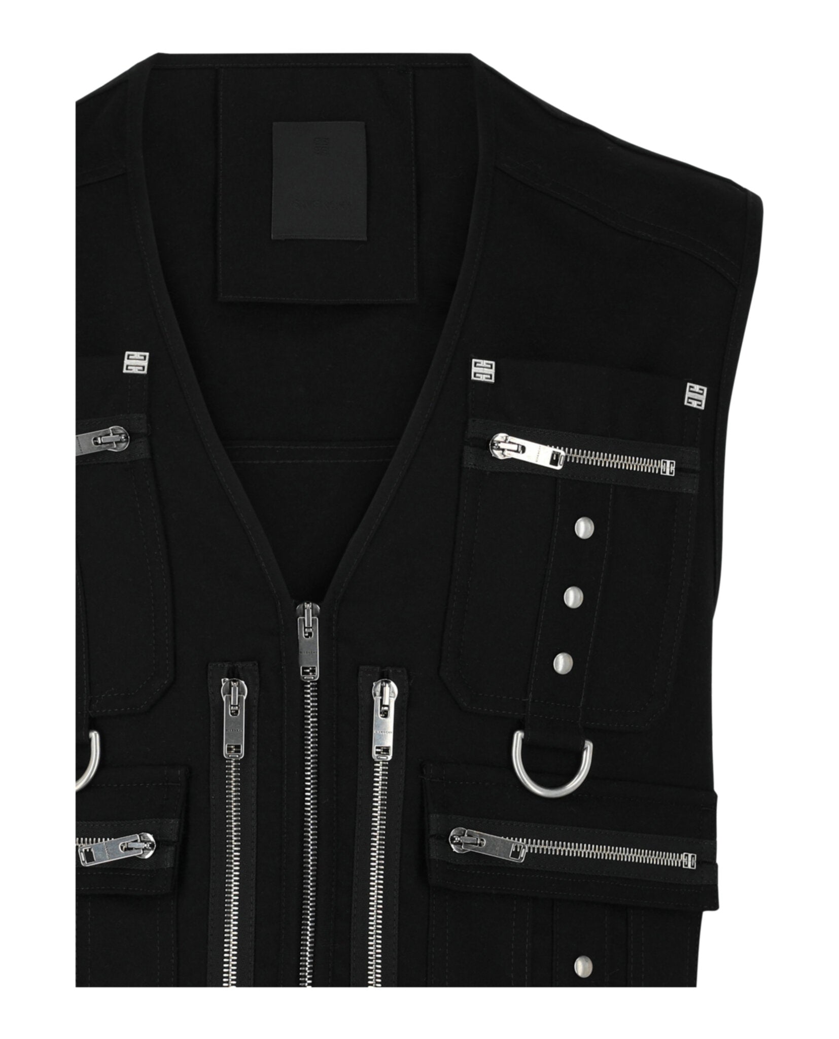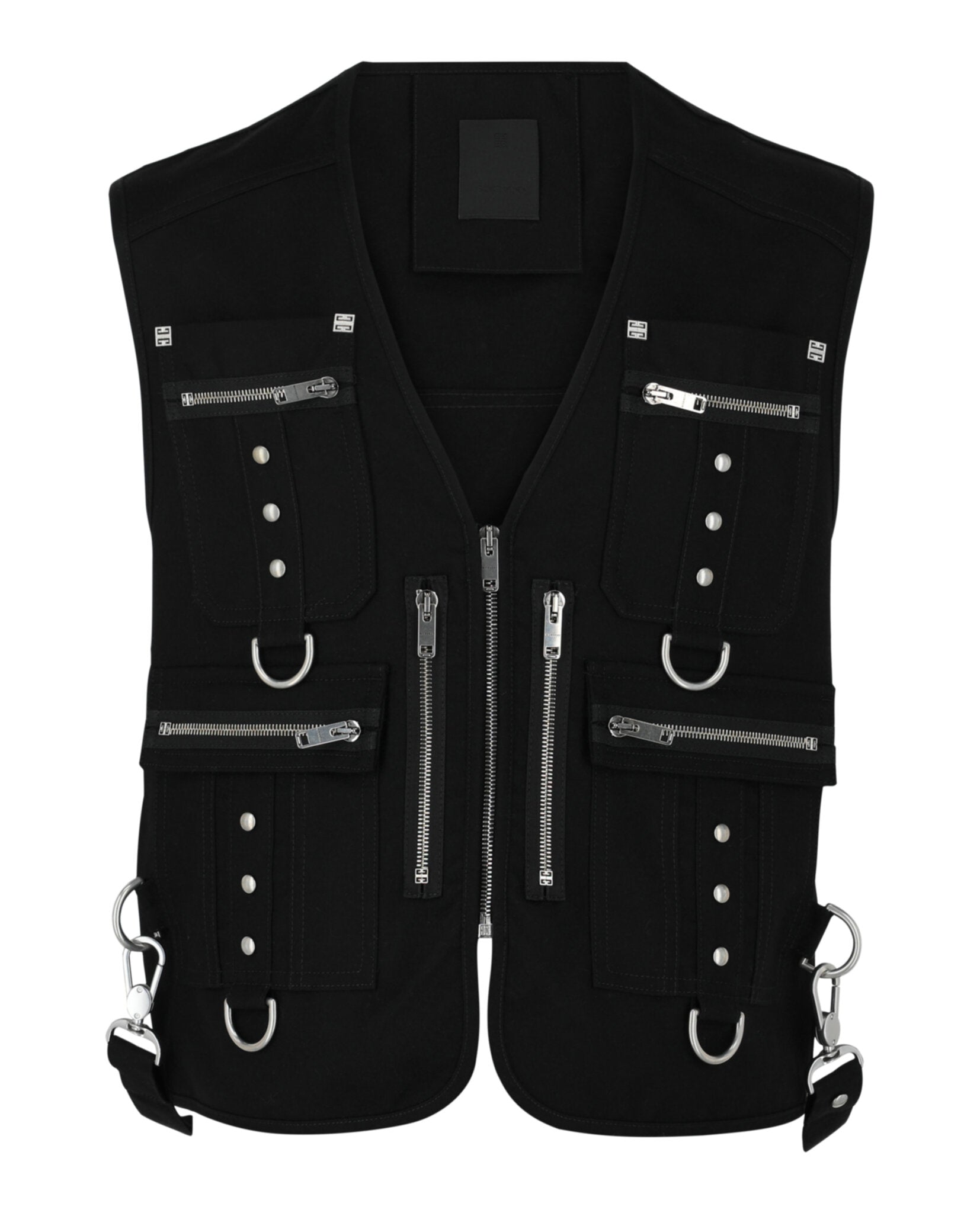Elevate your outerwear game with this striking Multi-Pocket Wool Vest from Givenchy. Crafted from 100% wool, this vest features a utilitarian-inspired design with multiple zip pockets, studded accents, and subtle 4G logo details that showcase the brand's signature aesthetic.