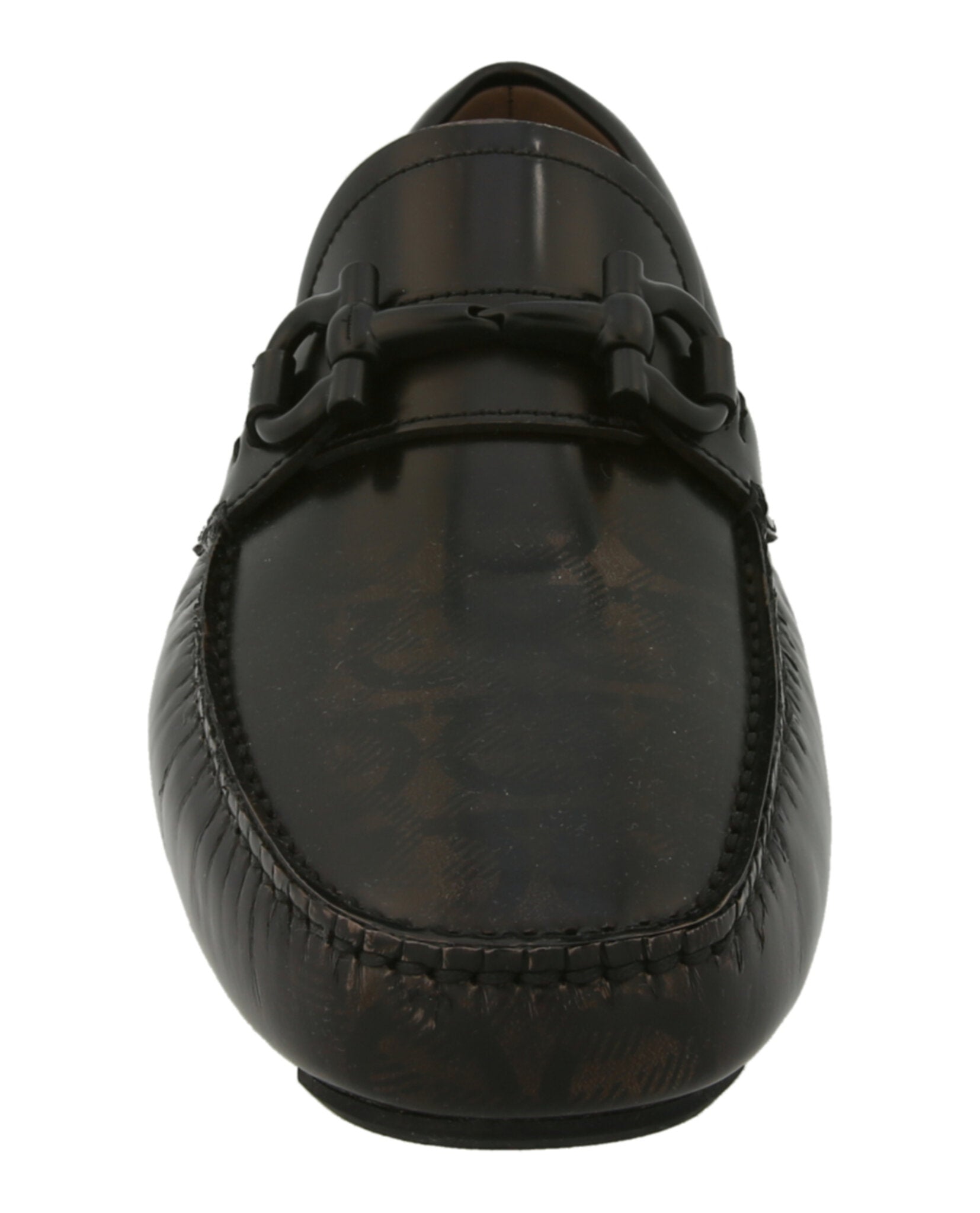 Elevate your casual sophistication with these Parigi Gancini Leather Drivers from Ferragamo. Crafted from premium 100% calfskin leather, these slip-on drivers feature the iconic matte black Gancini hardware at the vamp and an all-over Gancini print for unmistakable luxury appeal.