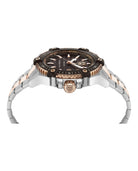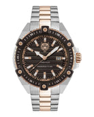 This striking 47mm watch features a two-tone case and bracelet that exudes modern elegance, while the rich brown enamel dial adds a touch of refined masculinity. The precision 3-hand date quartz movement ensures reliable timekeeping, and with 5 ATM water resistance, this watch is built to keep pace with your active lifestyle.