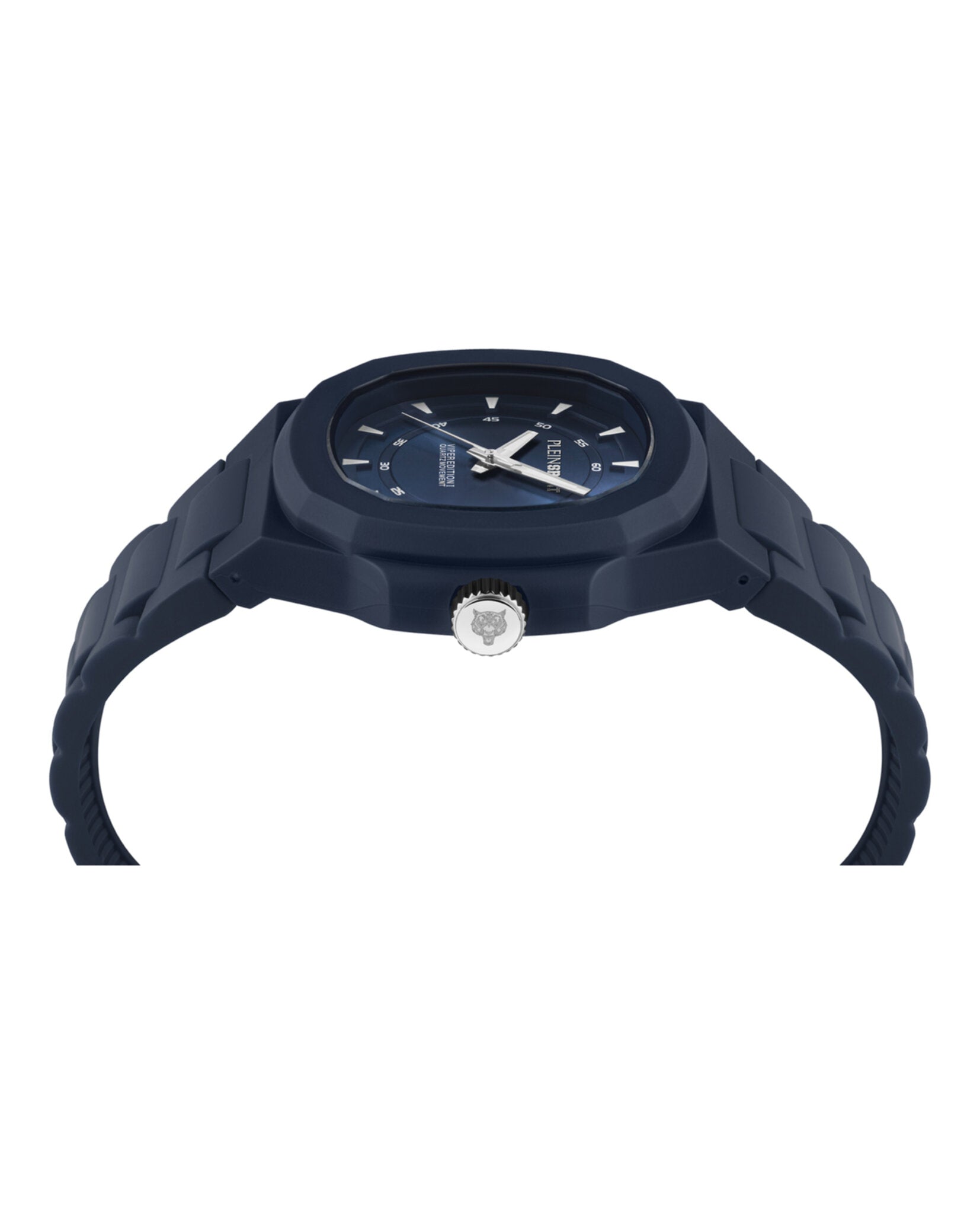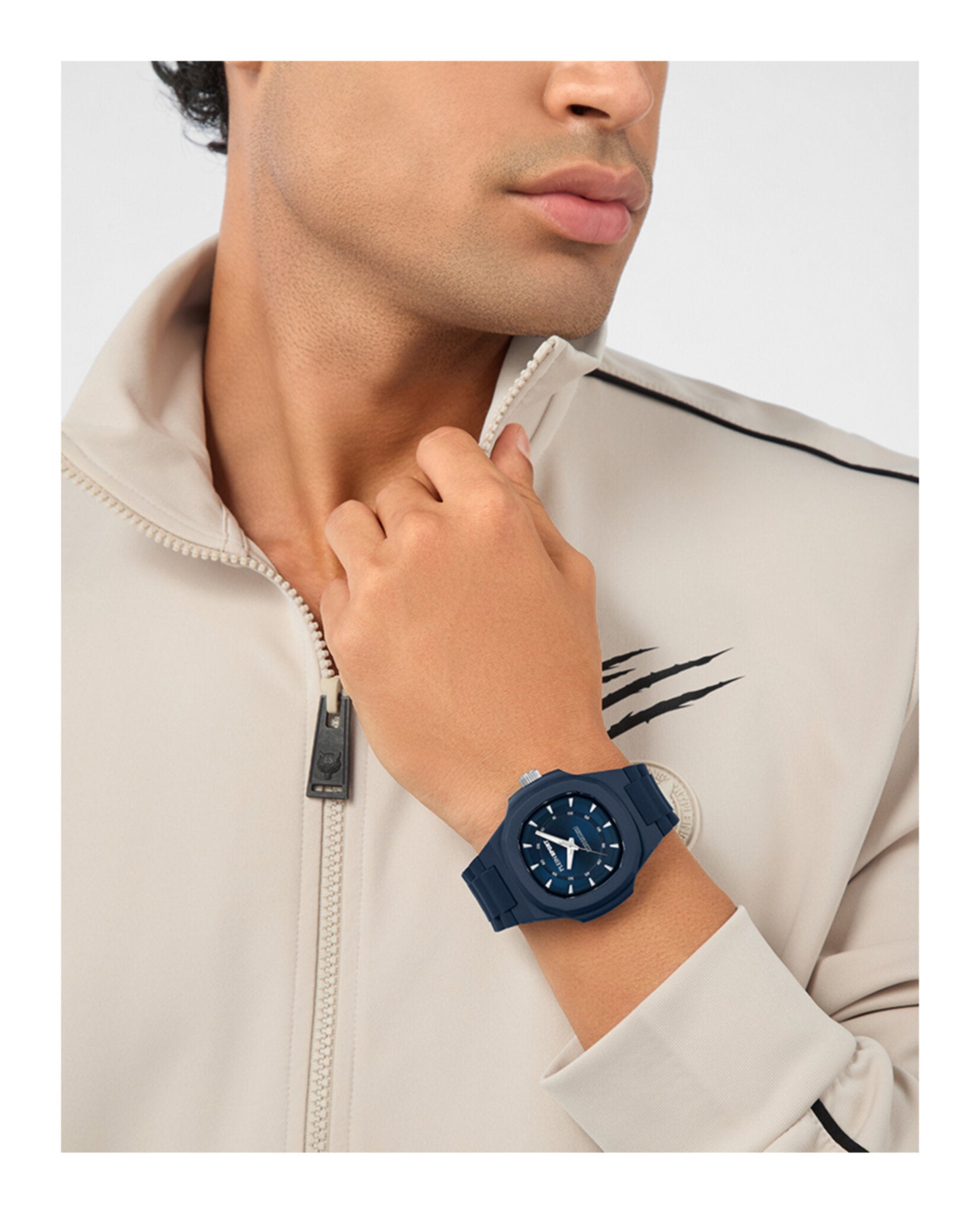Elevate your athletic style with the Plein Sport Viper I Silicone Watch, a bold timepiece that combines sporty functionality with contemporary design. This striking watch features a 42mm blue silicone case paired with a matching blue silicone strap, creating a cohesive and eye-catching look.