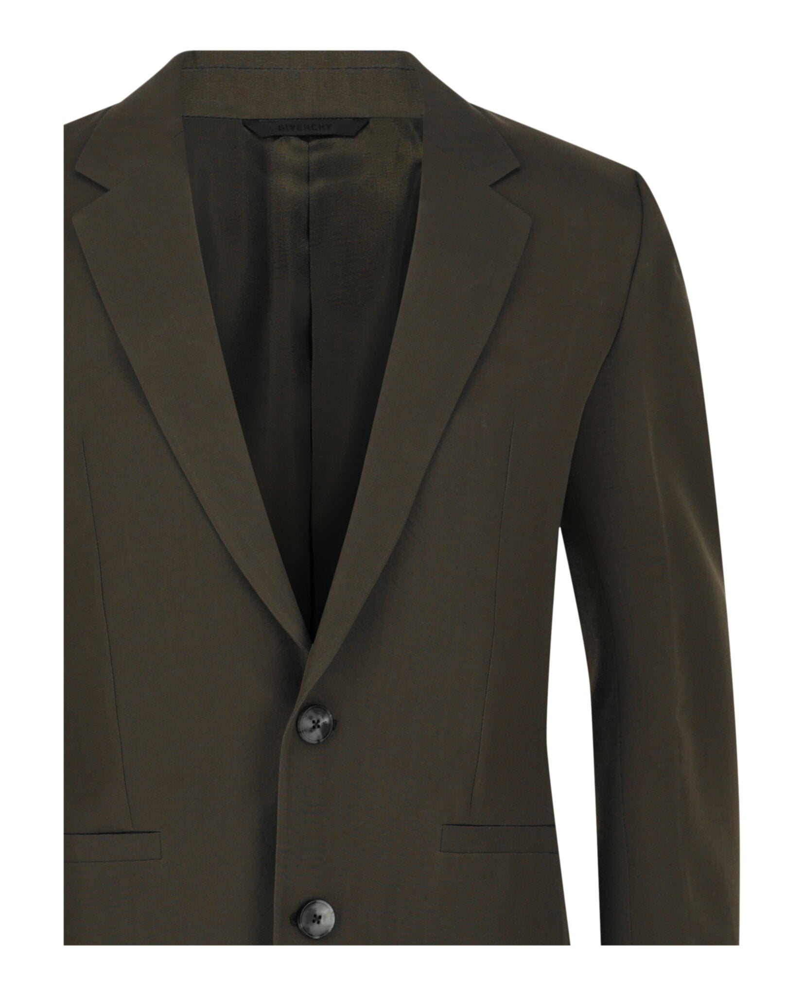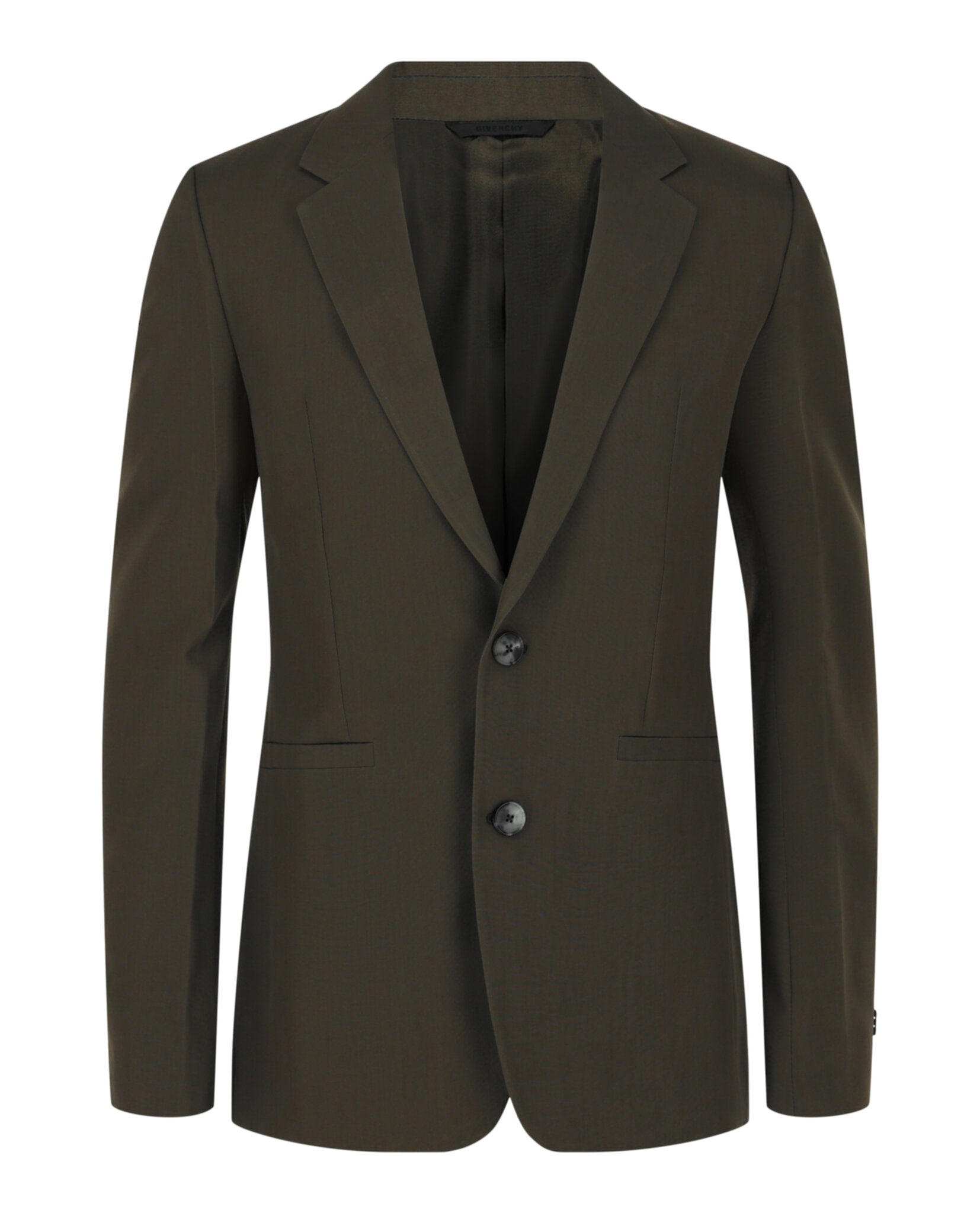 Givenchy presents this impeccably tailored slim fit single-breasted blazer, crafted from 100% wool for a luxurious feel and refined silhouette. This sophisticated piece features a classic collar, front button closure, and four welt pockets, while the signature 4G logo lining and structured shoulder pads add distinctive designer details.