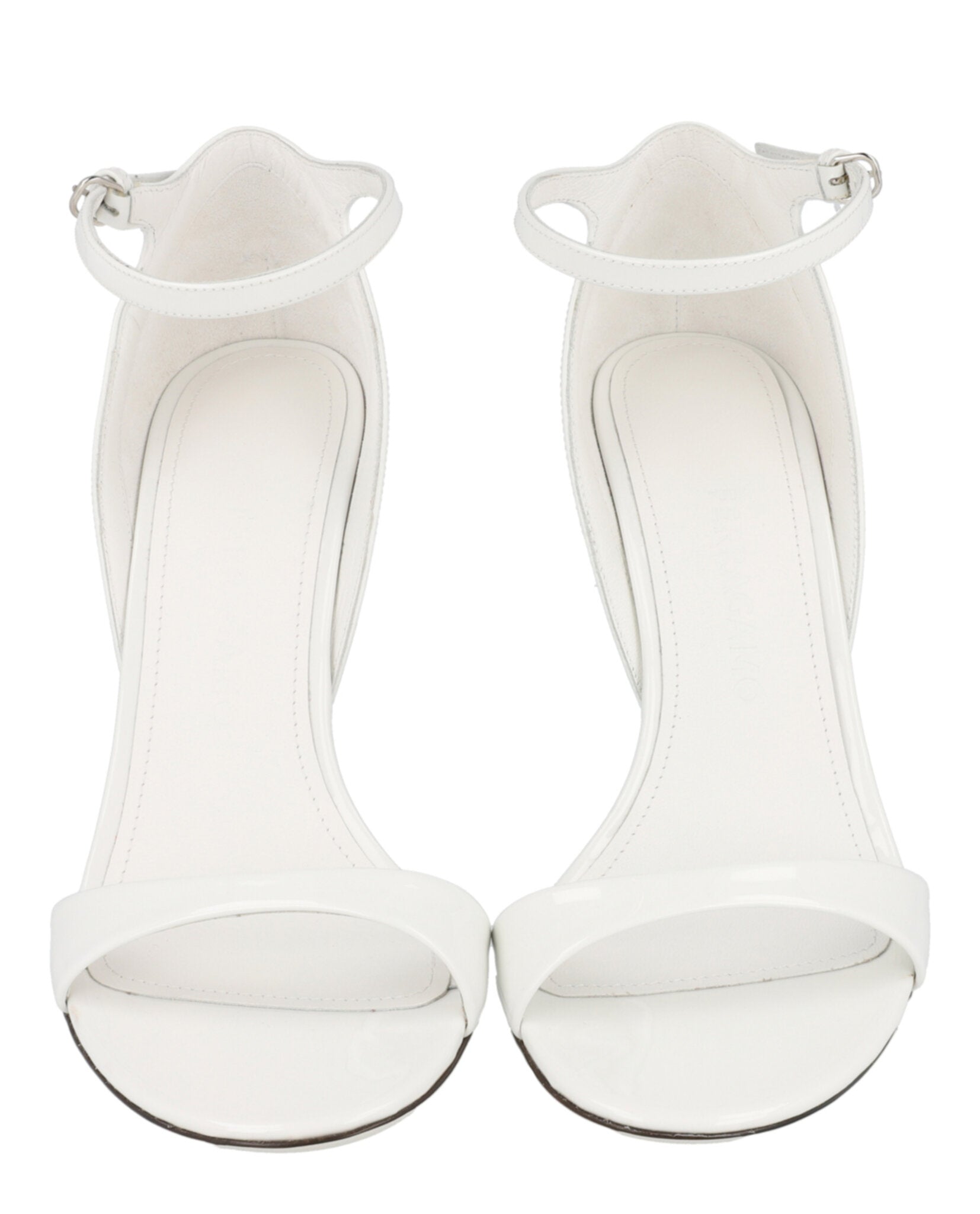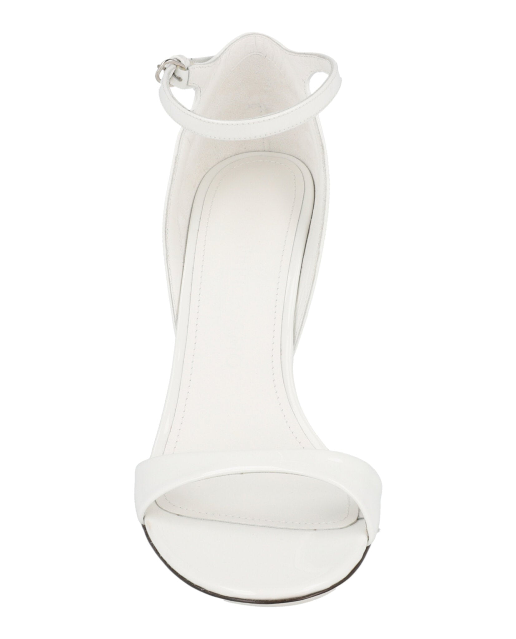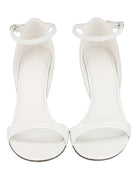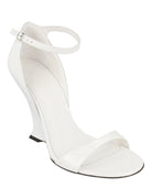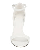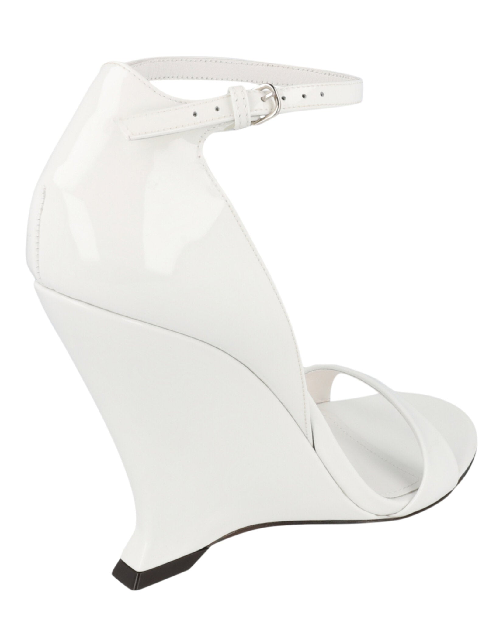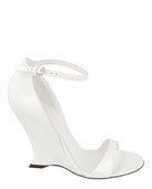 The elegant ankle strap with buckle closure ensures a secure fit, while the round toe silhouette offers timeless appeal. The pristine white colorway and silver-tone hardware add refined touches that make these wedges perfect for everything from office meetings to evening cocktails.