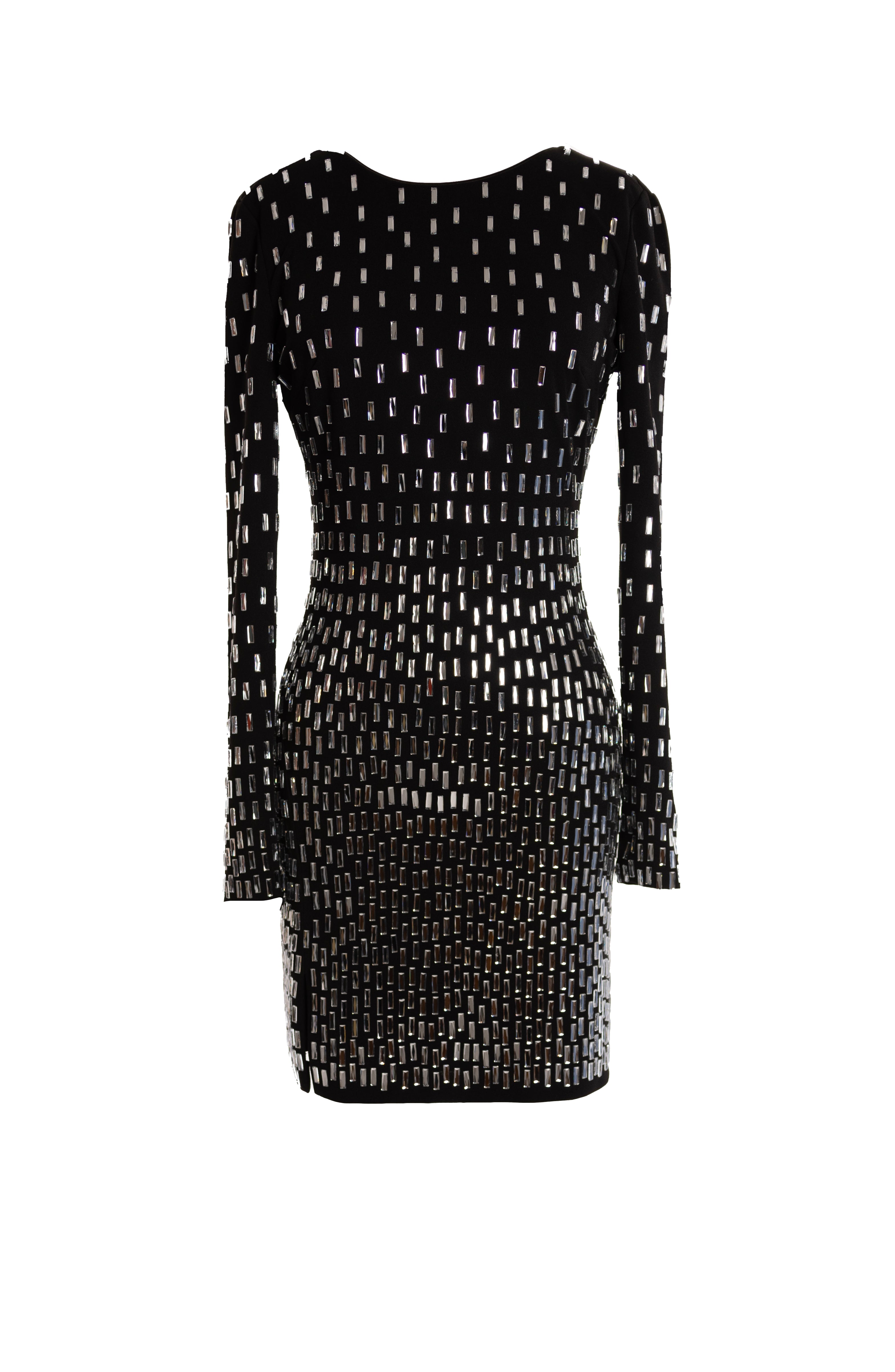The Nathalia is a sleek long sleeve mini dress with a round neckline and a front side slit, designed with a bodycon fit to add a touch of allure to your look.