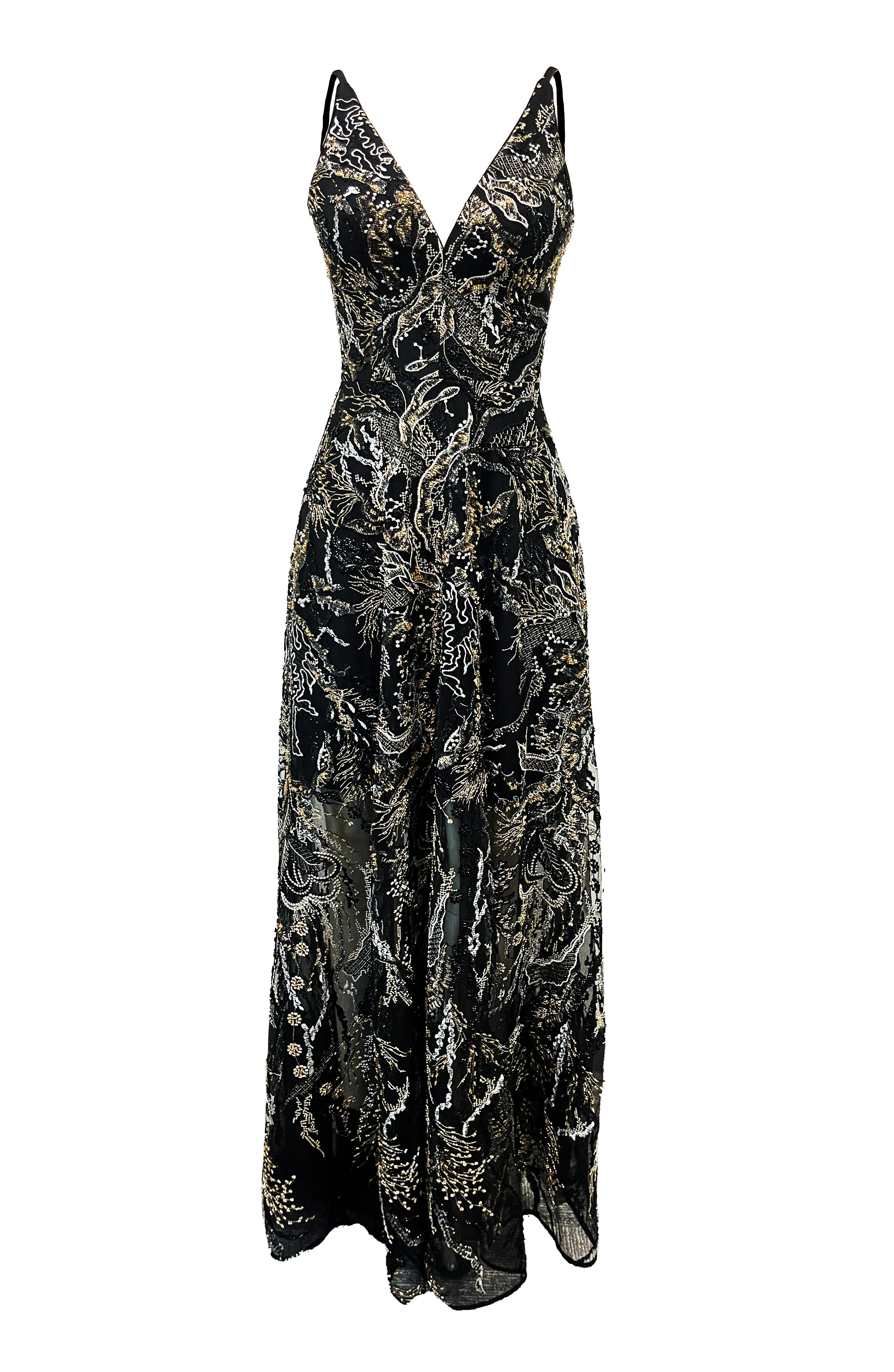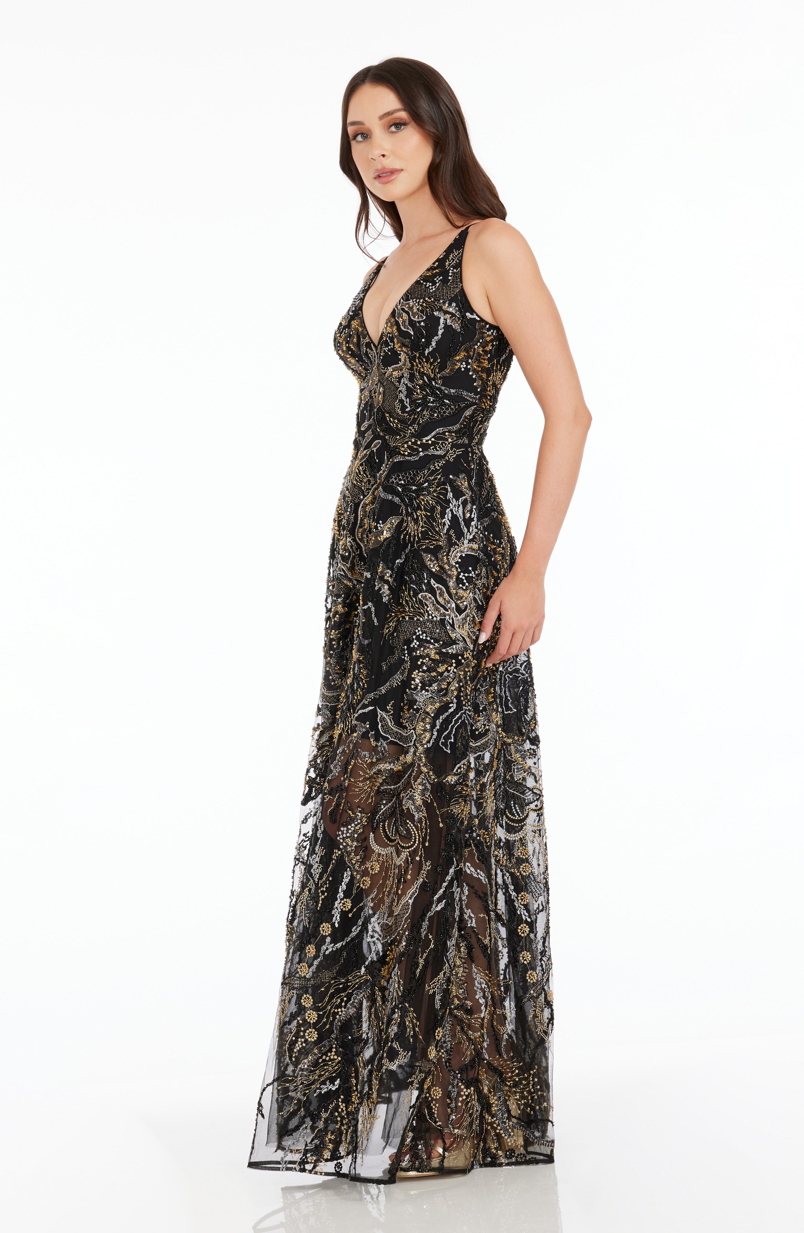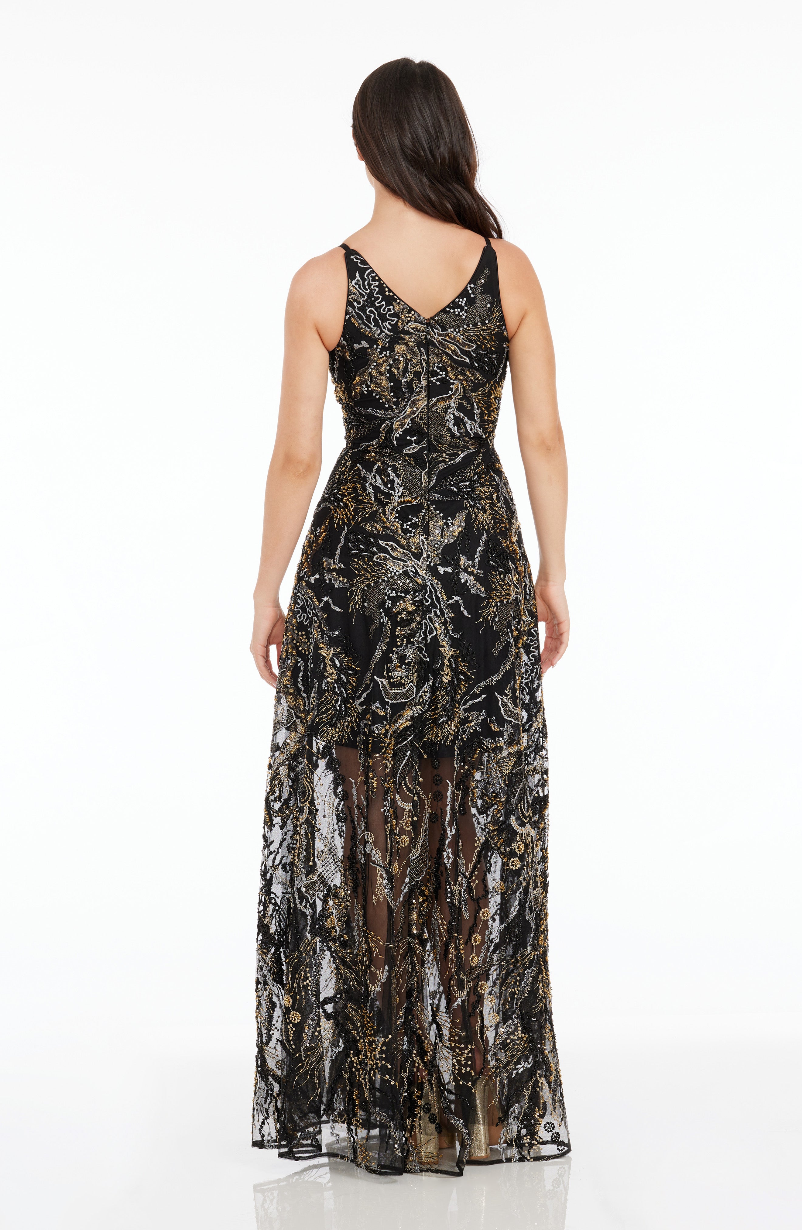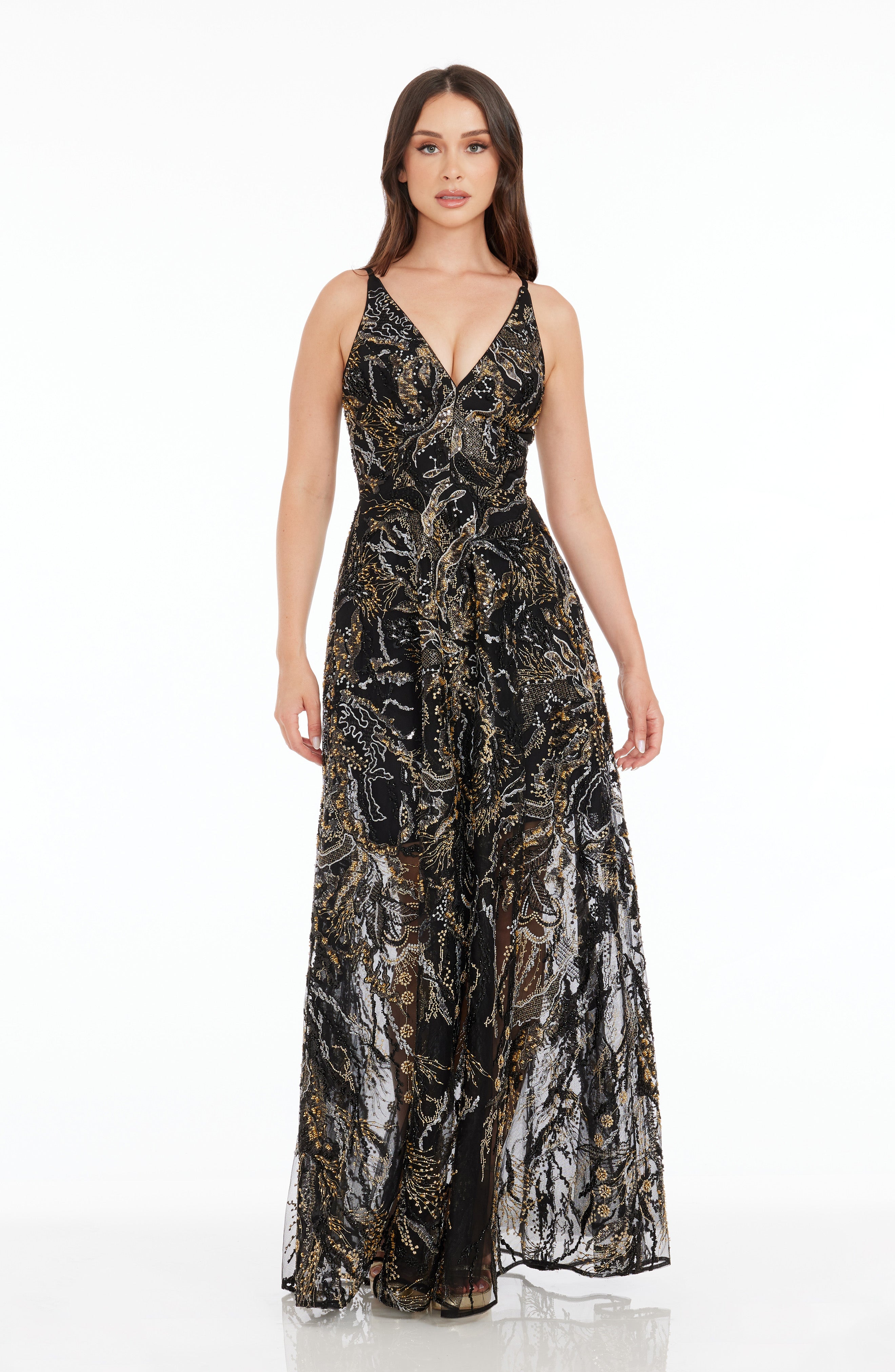 Look stunning in Ariyah, a fit and flare gown with a beautiful v-neck design. Accented with floral sequins, this piece brings elegance and sophistication to any occasion. The breathable fabric and classic silhouette make this gown perfect for any special event.