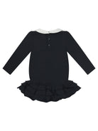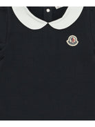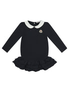 Elevate your little one's wardrobe with this charming Black Cotton Blend Dress from MONCLER KIDS. Featuring a classic Peter Pan collar in crisp white contrast and the signature Moncler logo badge, this sophisticated piece combines timeless elegance with playful details.
