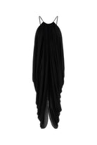 Make a dramatic entrance in this stunning black silk dress from LOEWE. This luxurious maxi dress features exquisite draping throughout, creating an effortlessly elegant silhouette that flows beautifully with every movement.