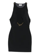 I OWN A BODYCON DRESS MADE OF STRETCH FABRIC AND DESIGNED TO FIT TIGHTLY. THE DRESS WITH STRAPS STANDS OUT FOR ITS REFERENCES TO THE WORLD OF LINGERIE, LIKE THE ZIG-ZAG STITCHING AND THE CUTS WITH A BUSTIER EFFECT THAT SHAPE THE SILHOUETTE. INSERTS IN TULLE AND JEWEL DETAILS WITH A LOGO COMPLETE THE GARMENT. PERFECT TO PAIR WITH HIGH HEELS AND MINIMALIST ACCESSORIES.