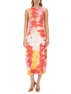Make a bold statement in this stunning tie-dye dress from MSGM. Featuring a vibrant coral, pink, and yellow tie-dye treatment, this sleeveless midi dress brings effortless energy to your wardrobe.