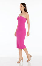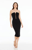 Introducing our stunning strapless mesh insert bodycon midi dress, the perfect addition to your wardrobe for any special occasion. This beautiful dress is designed to enhance your curves and show off your silhouette, ensuring you feel confident and stylish wherever you go.