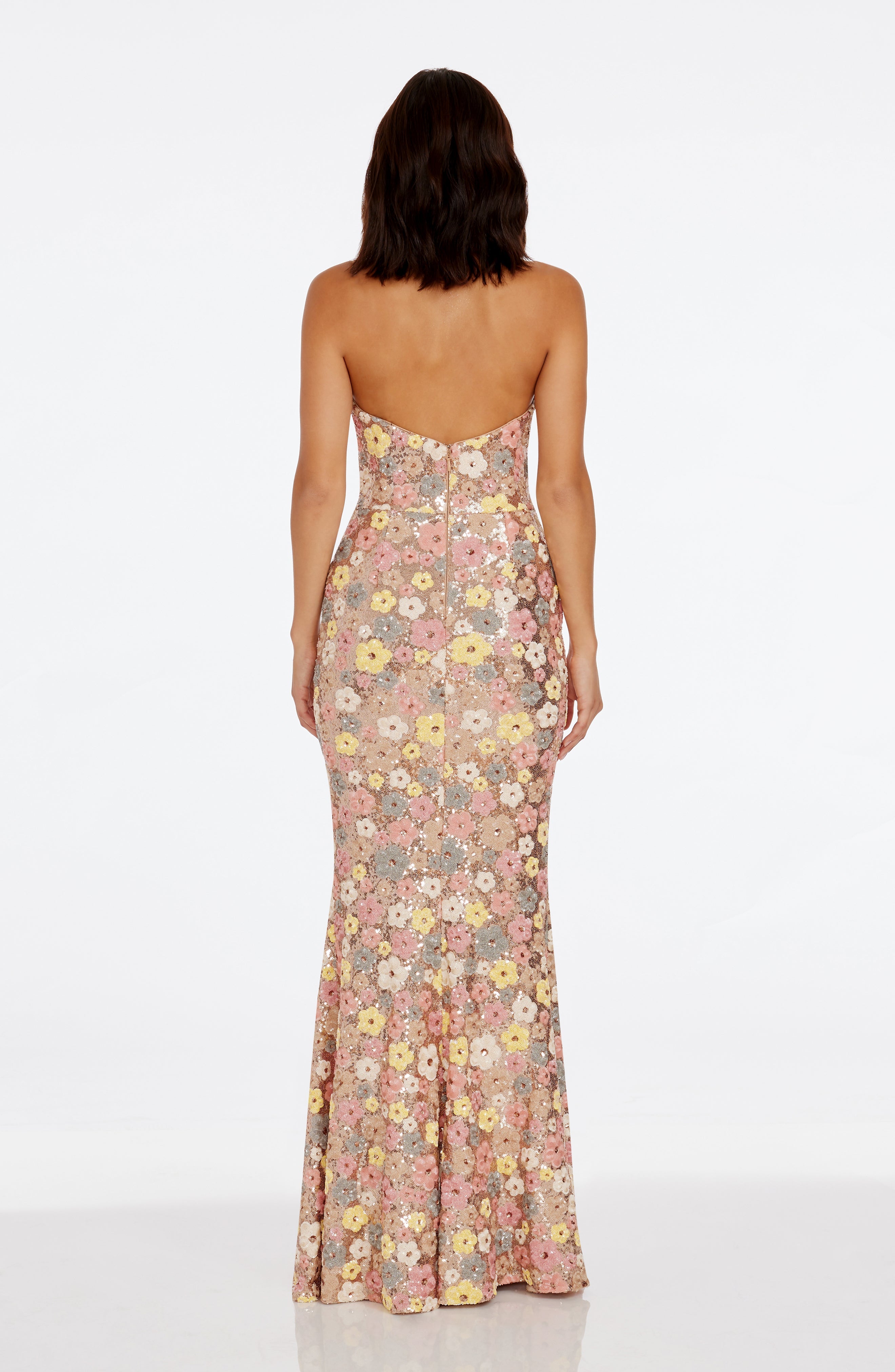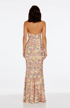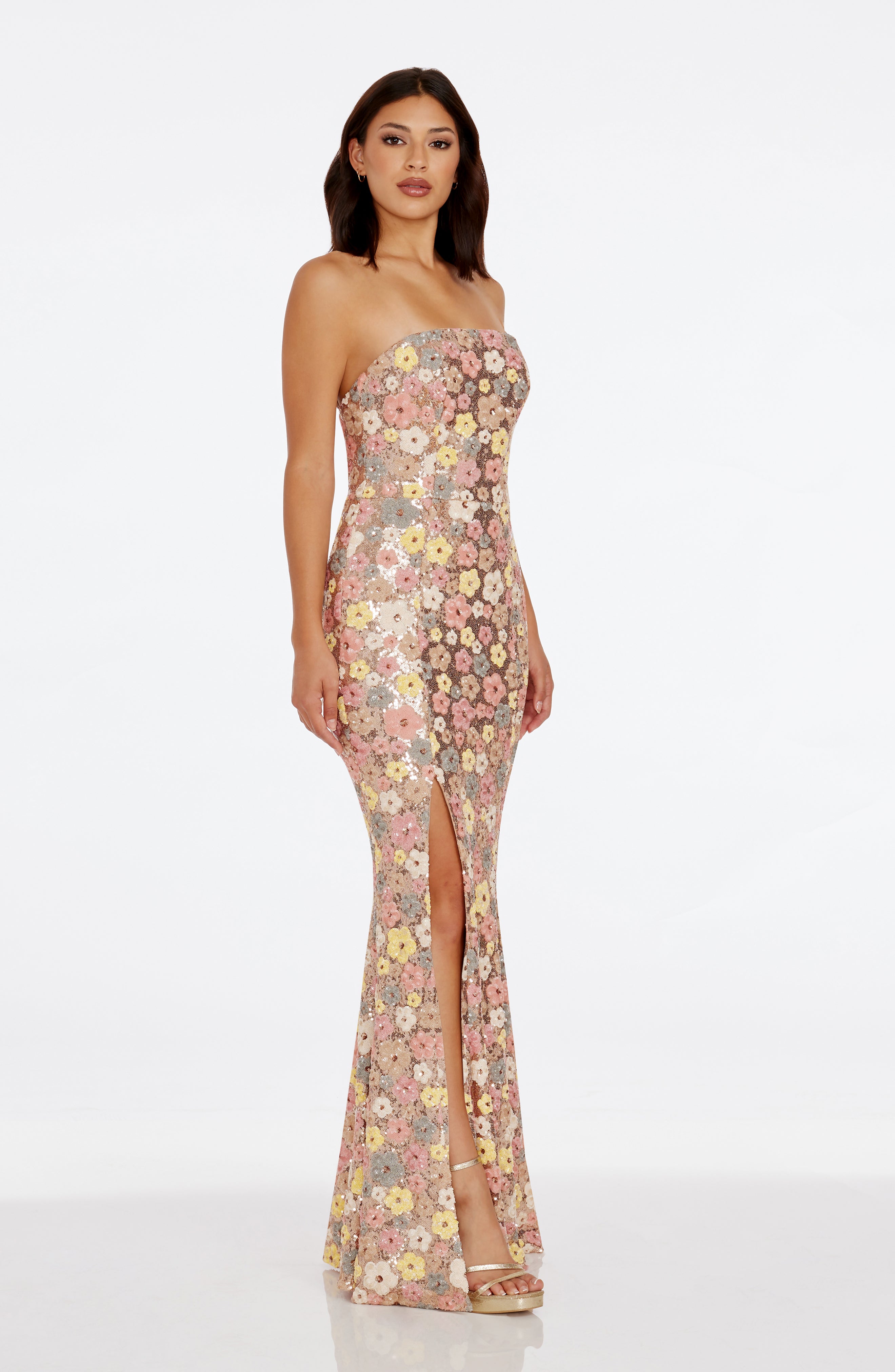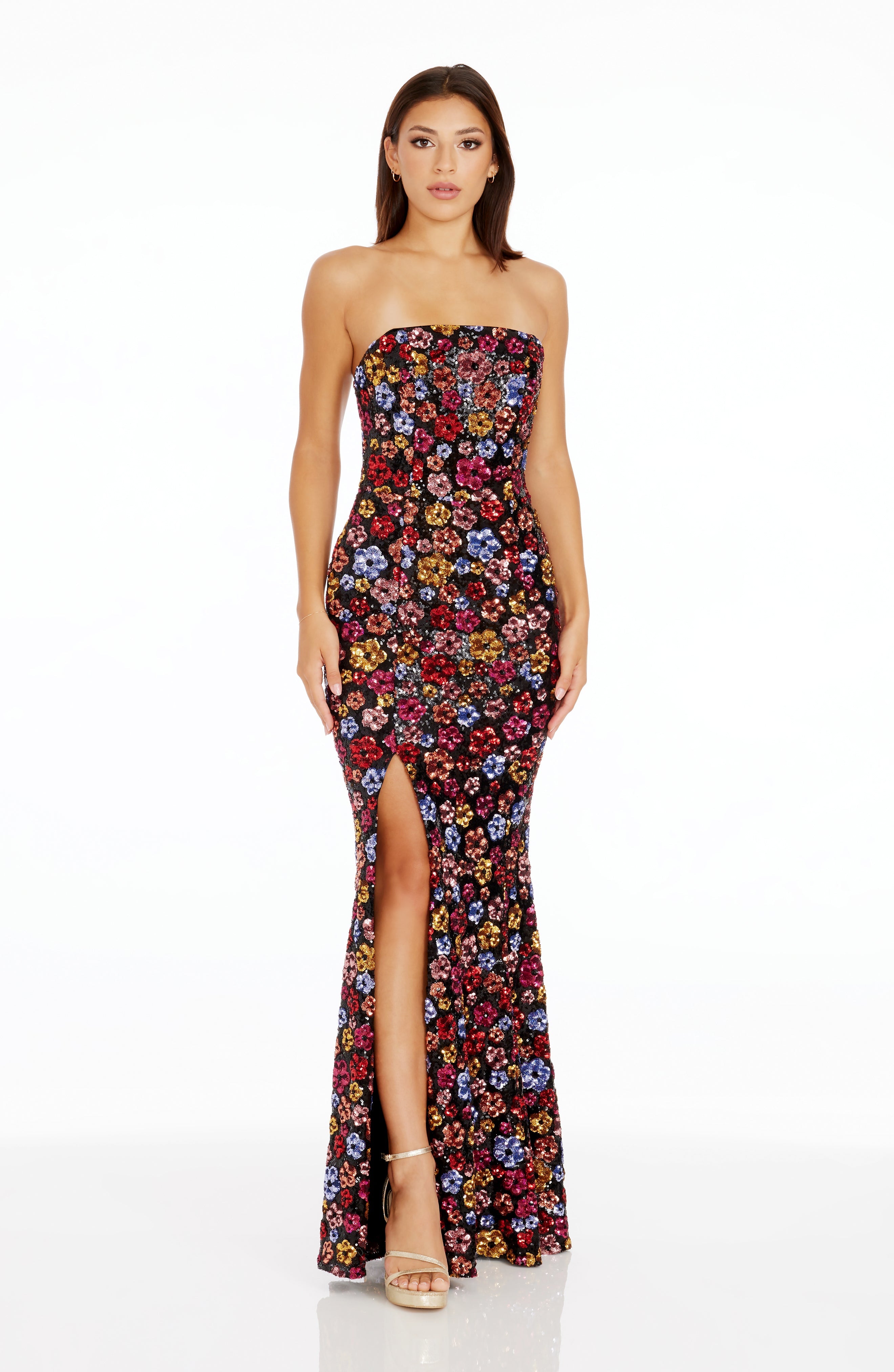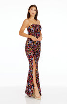 Indulge in effortless elegance. The Janelle Dress offers a sleek strapless design and a flattering mermaid silhouette. Plus, with a daring slit, you'll be sure to turn heads at your next event.