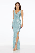 Designed for a sophisticated and timeless look, this mermaid gown offers a sleeveless design with a ruched and surplice neckline that exudes grace and elegance.