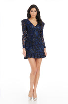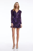 The Kelsey Dress is perfect for any occasion. It features a plunge neckline and long sleeves complemented by a ruffled hem and mini-dress length. You'll look and feel your best in this elegant and stylish dress.