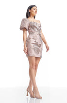A fun mini dress with a puff sleeve that can be worn on or off-the-shoulder and stylish belt.