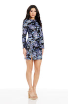 The Nathalia Dress features long sleeves, a round neck, and a front side slit for a modern and flattering fit. Designed in a bodycon style, this mini dress is perfect for showcasing your curves. Stay stylish and confident in this must-have wardrobe staple.