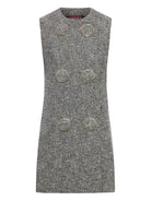 Elevate your wardrobe with this exquisite Seeded Wool Dress from Gucci. This tailored mini dress features a sophisticated black and white wool construction with a structured silhouette that exudes timeless elegance.