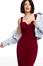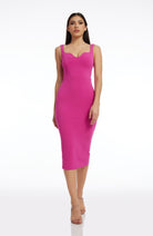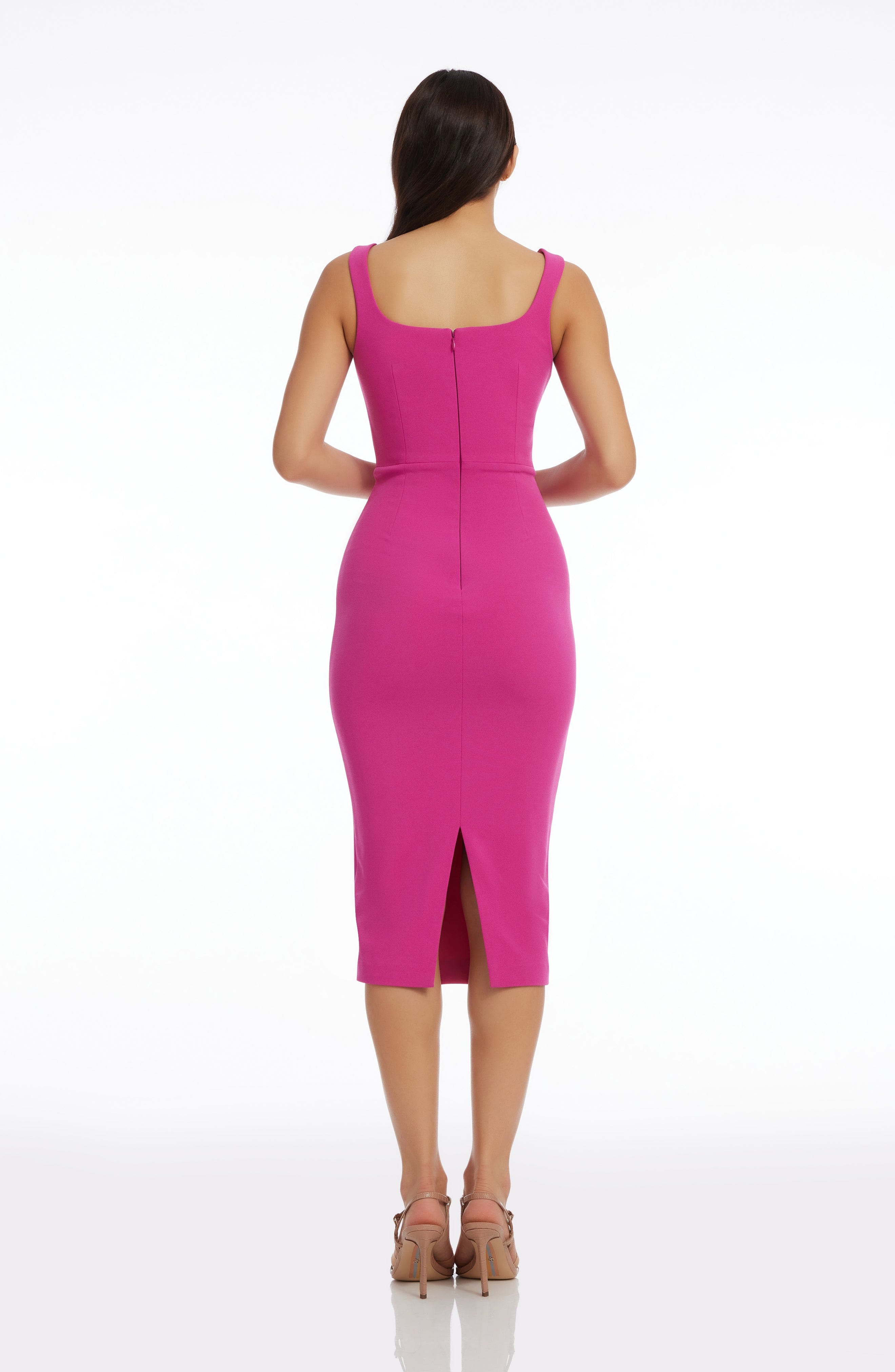 This chic sleeveless body-con dress is sure to turn heads wherever you go. It features an eye-catching sweetheart neckline, back slit and invisible back zipper. It is fully lined, mid-weight, with a light stretch that will accentuate your beautiful figure.