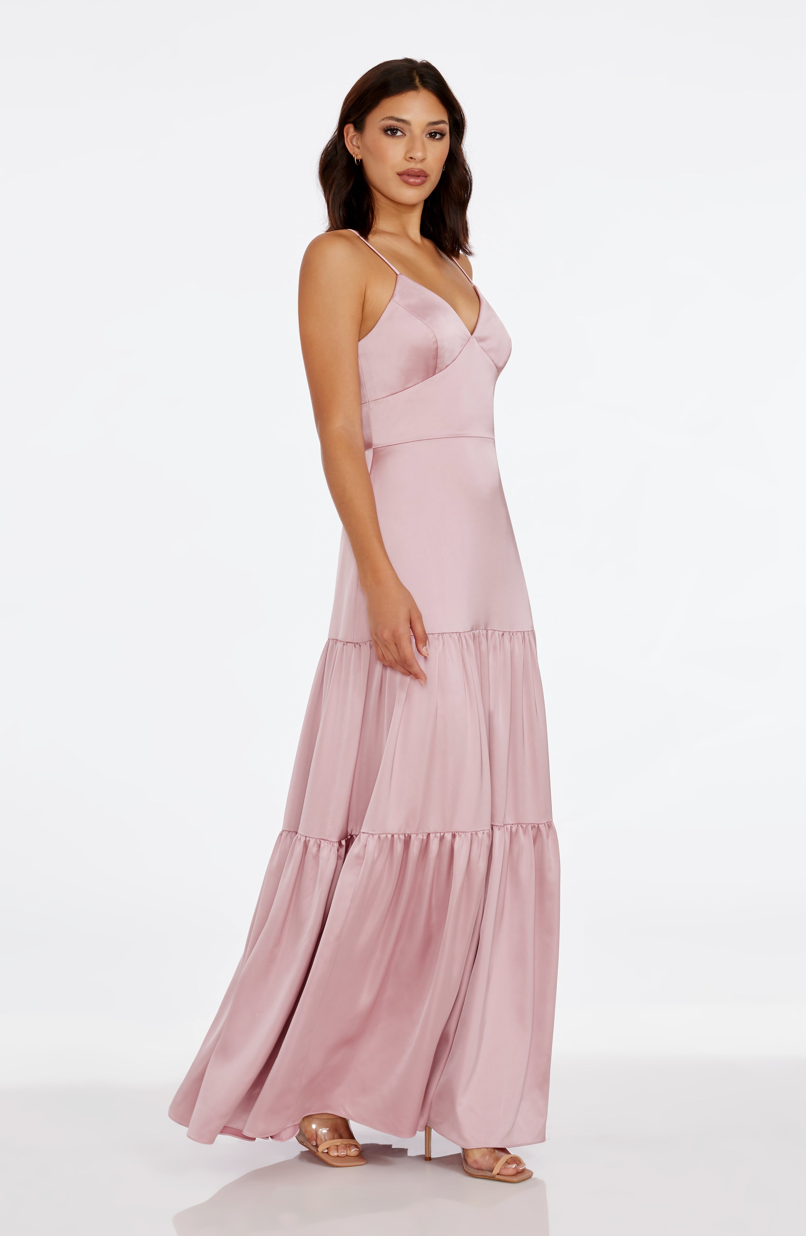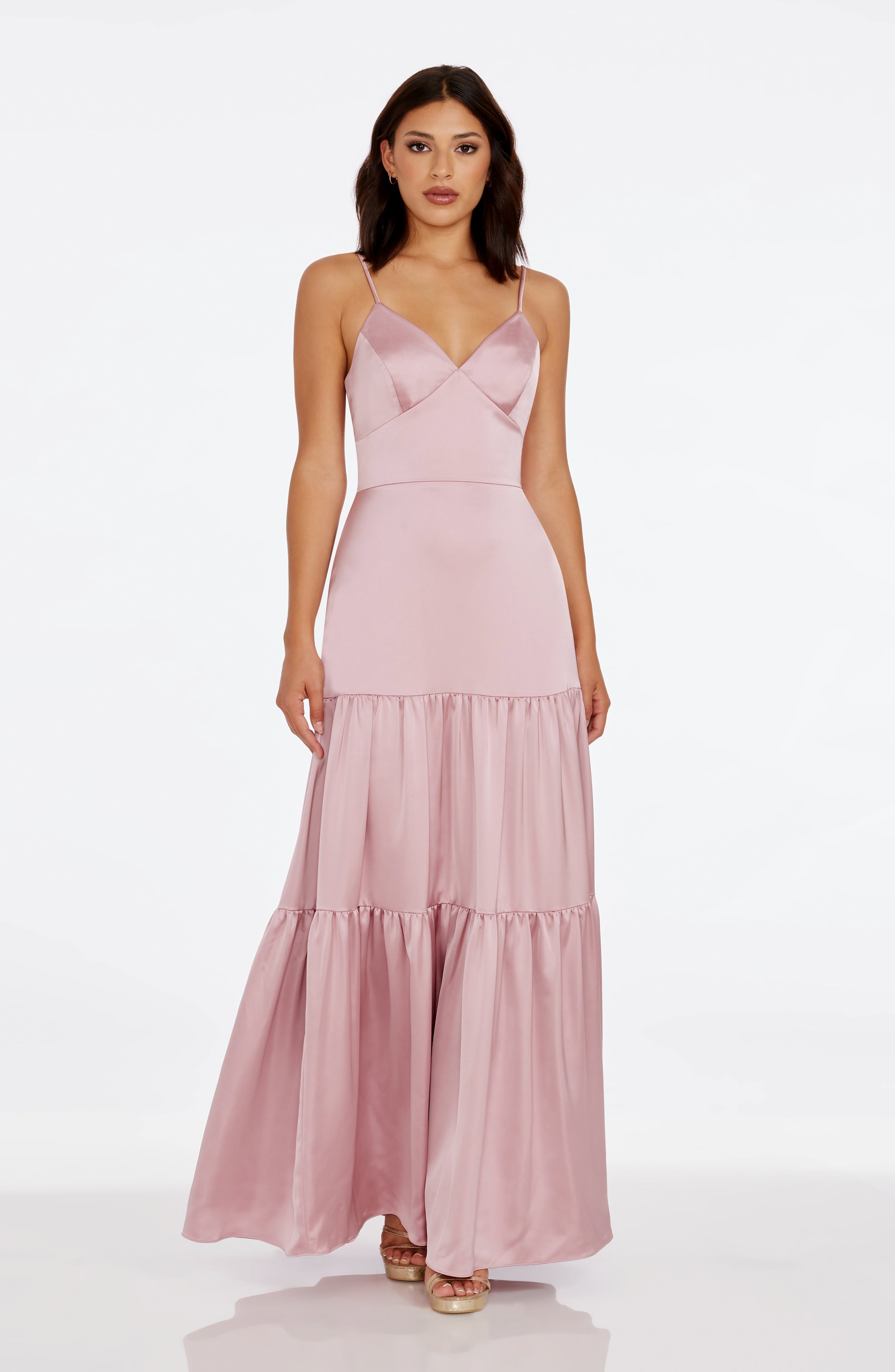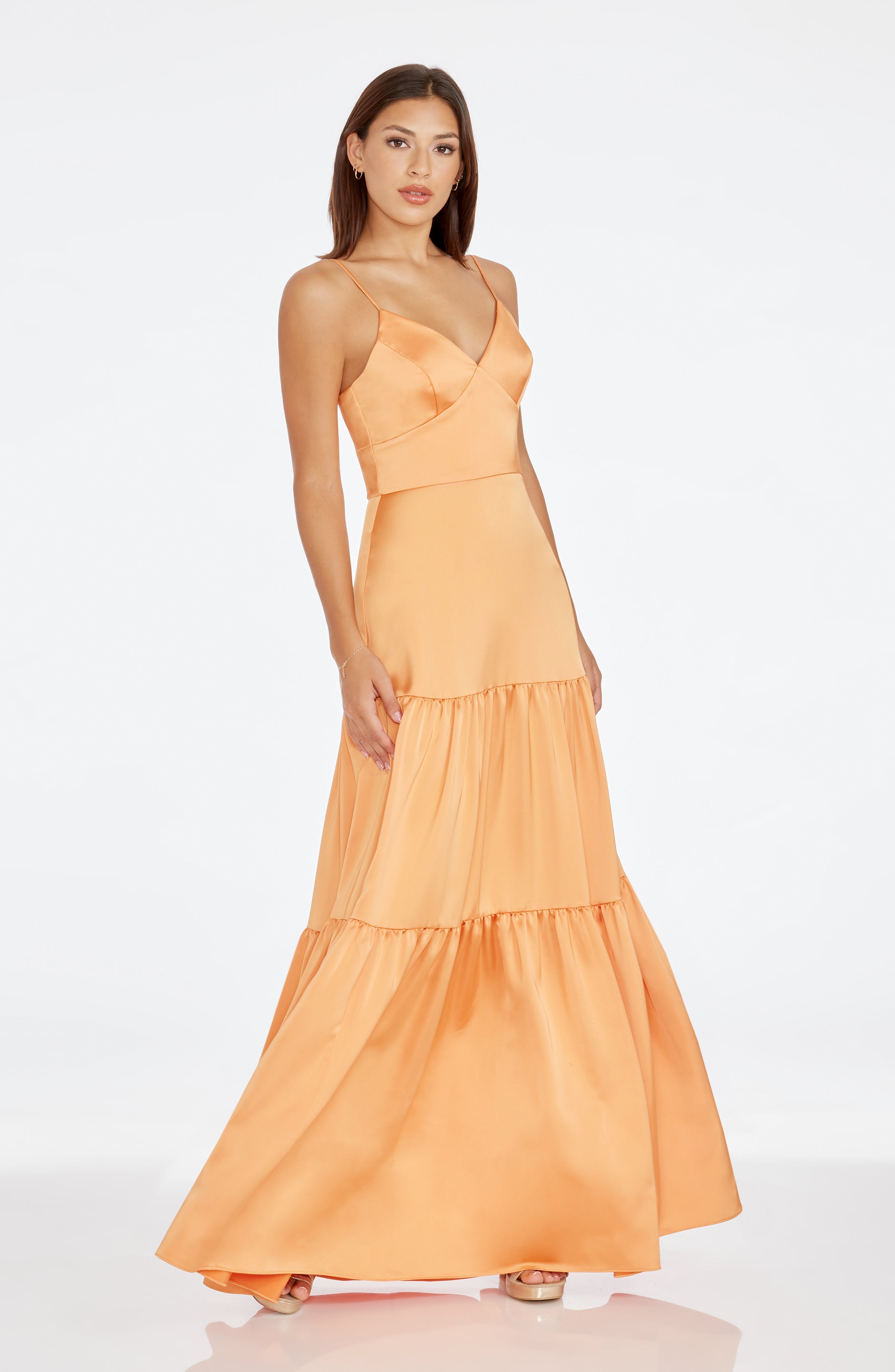 Introducing the Tess Dress, a sleeveless v-neck fit and flare tiered gown. This elegant dress accentuates your figure while providing comfort and style. Perfect for any formal occasion, the Tess Dress is a must-have for your wardrobe. Made with high-quality material, it offers a timeless and chic look.