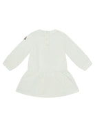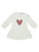Introduce timeless charm to her wardrobe with this adorable white cotton blend dress from MONCLER KIDS. Featuring a sweet heart graphic at the chest and a playful peplum silhouette, this long-sleeved dress combines comfort with effortless style.