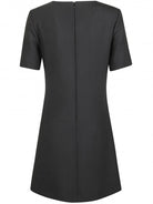 Elevate your wardrobe with this sophisticated black silk dress from PAROSH. This timeless piece features a classic crew neckline and flattering short sleeves, crafted from luxurious silk for an effortlessly chic look.