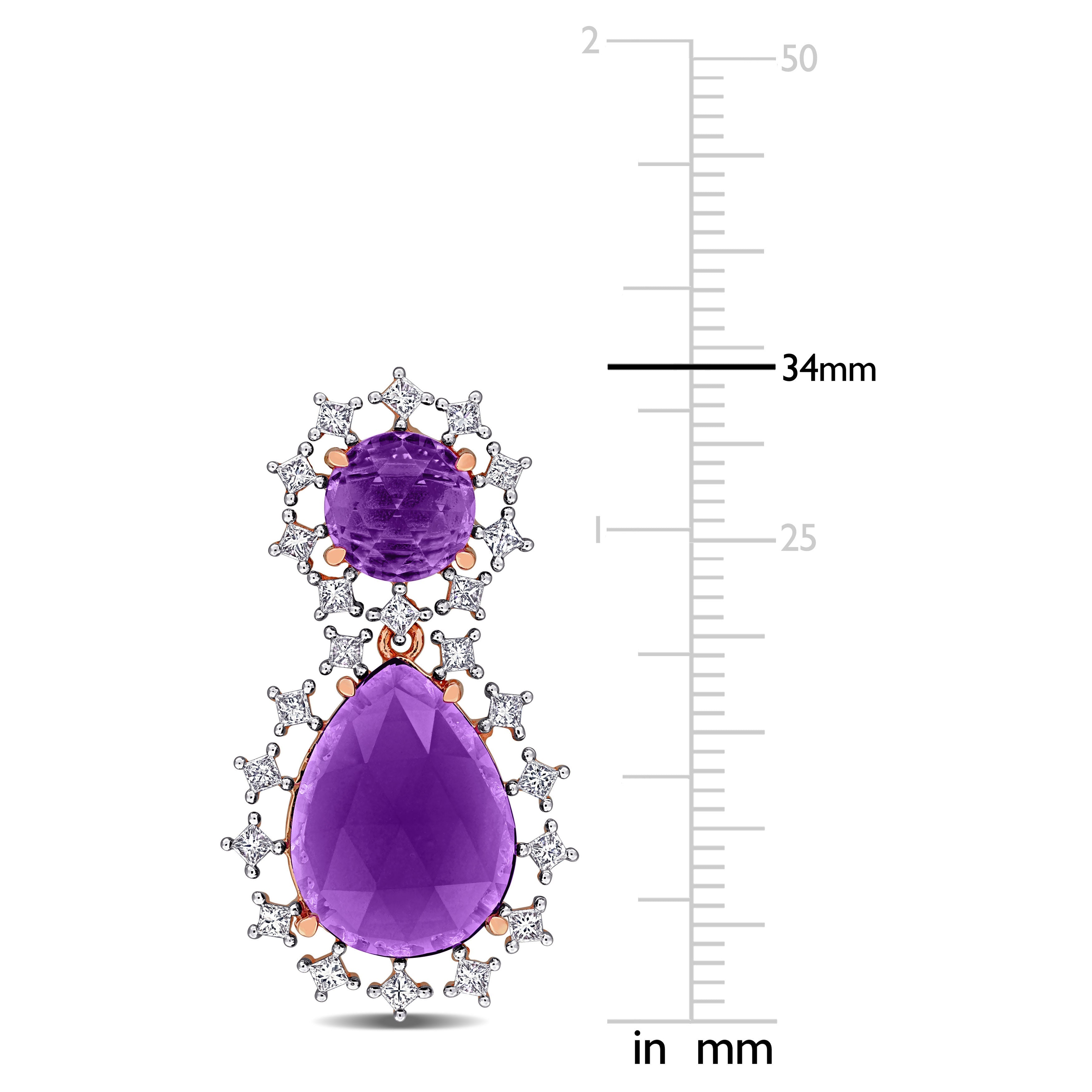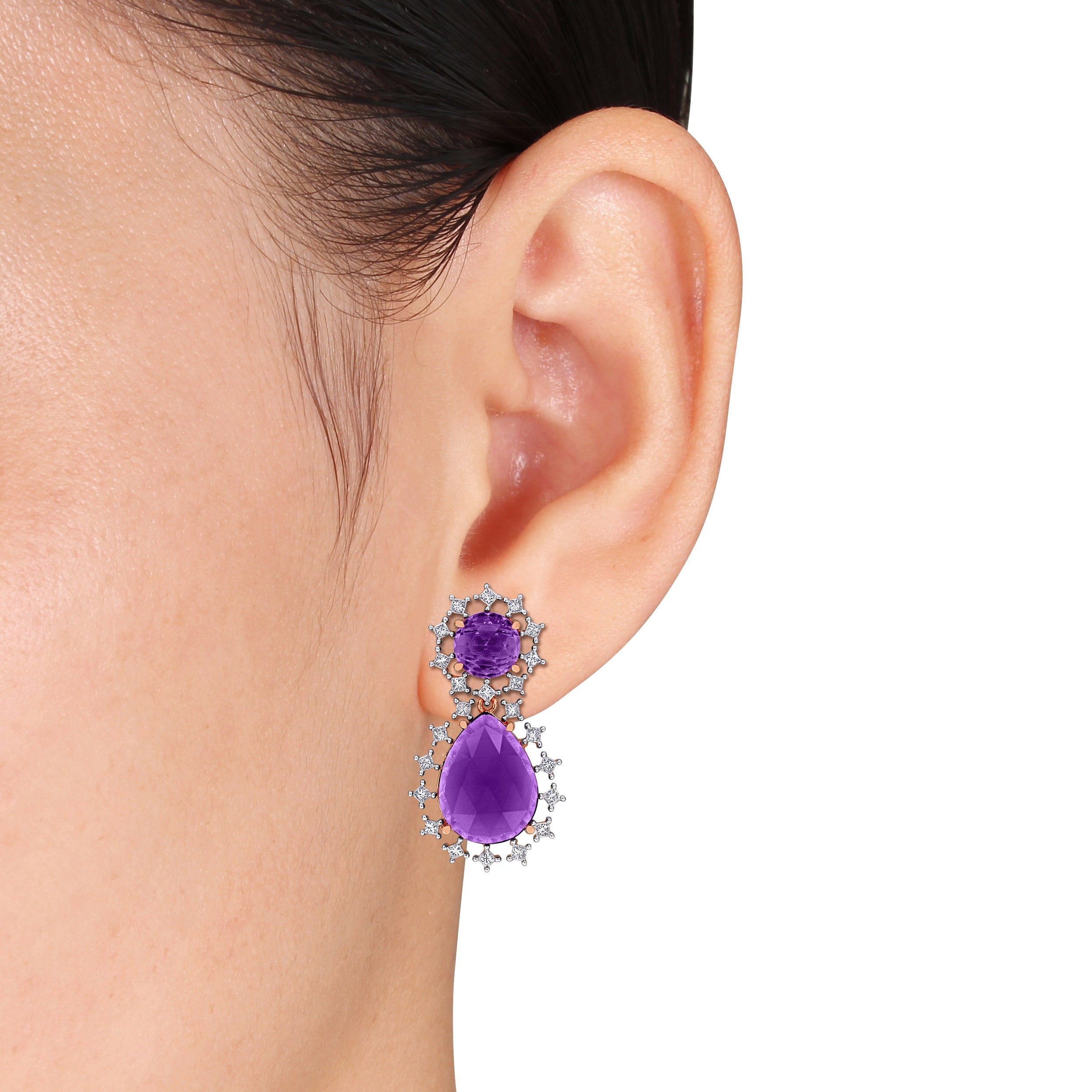 Amethyst & Diamond Drop Earrings in 10k Rose Gold