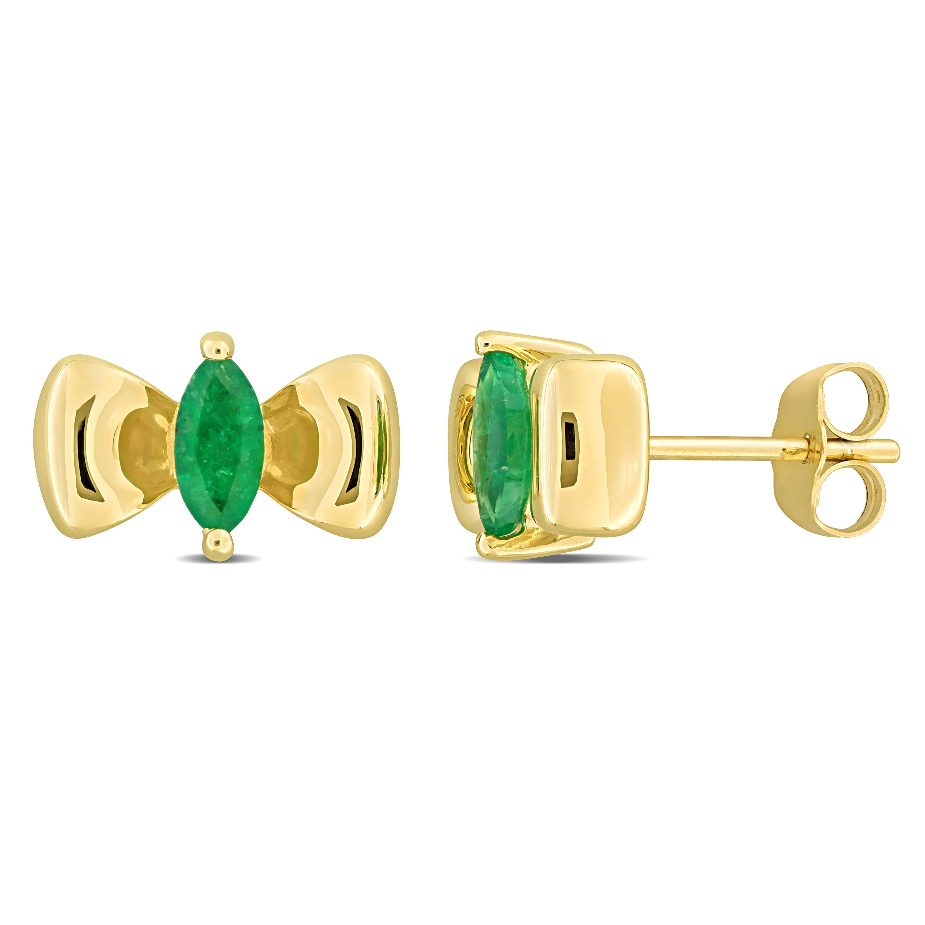 These elegant bow-tie stud earrings are beautifully crafted in 10k gold, showcasing stunning marquise-cut gemstones. The design of these earrings adds a touch of elegance and whimsy to any ensemble. These 10k gold earrings are the perfect choice for those who appreciate the captivating allure of gemstones and stylish design.