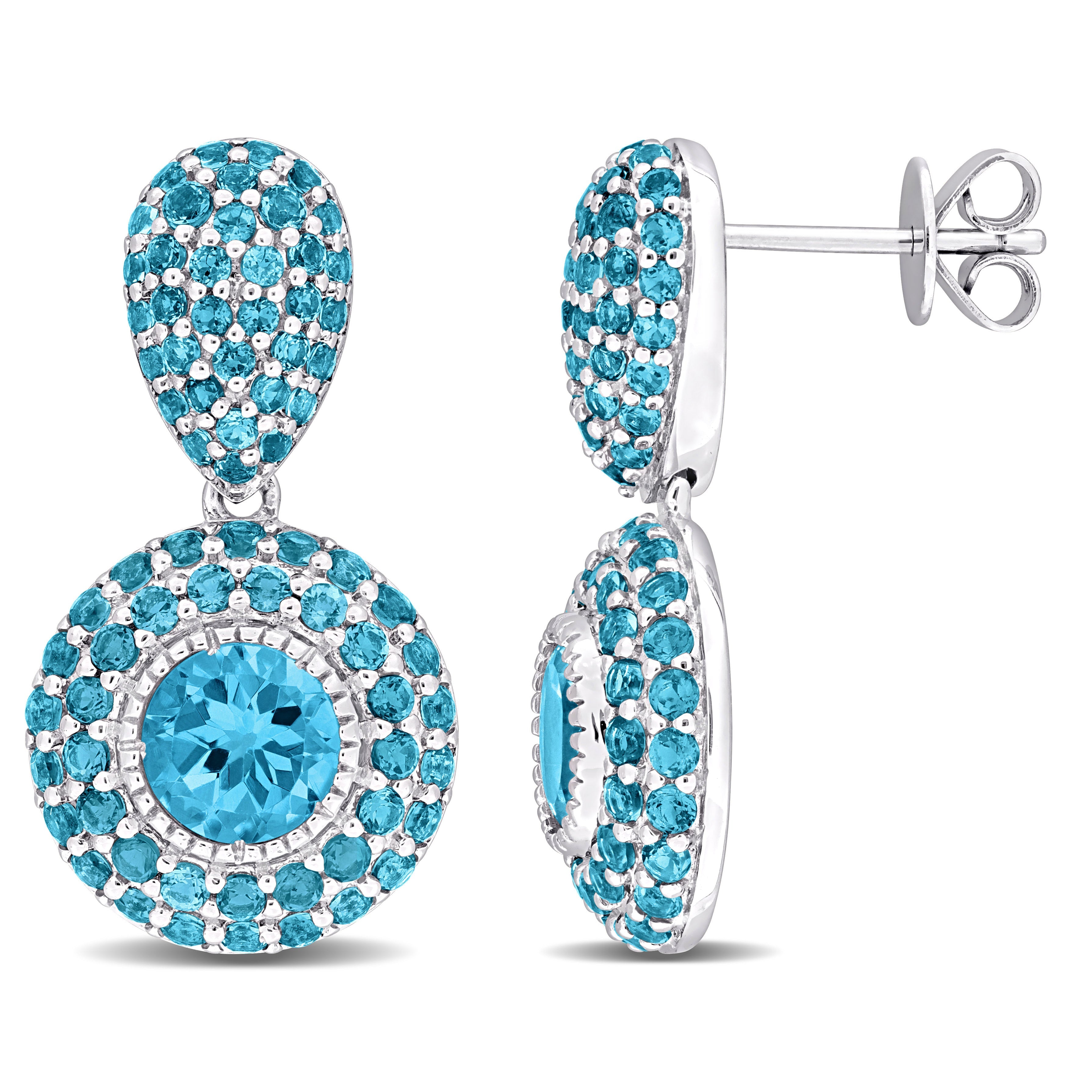 London Blue Topaz Cluster Drop Earrings in 14k White Gold