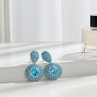 These cluster drop dangle earrings in 14k white gold offer a breathtaking display of blue hues. The combination of light and dark blue topaz creates a captivating contrast, making these earrings a perfect choice for adding a touch of elegance and color to any occasion. These earrings are sure to make a statement and dazzle with their radiant beauty.