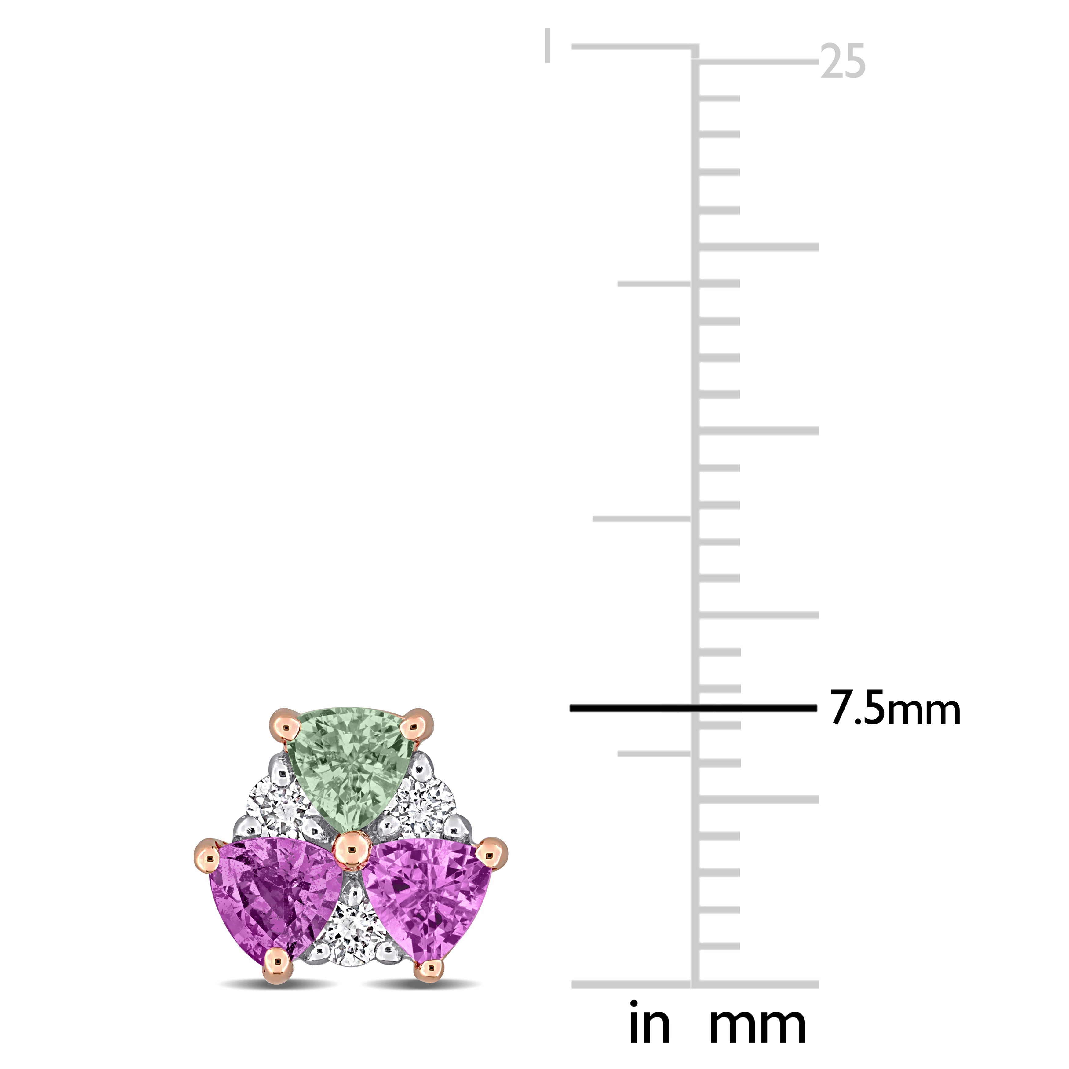 Add a touch of vibrant elegance to your collection with these Pink & Green Sapphire and Diamond Earrings, beautifully crafted in 14k rose gold. Each earring is a stunning blend of color and sparkle, featuring a delicate pink sapphire and a green sapphire, creating a unique and eye-catching contrast. Accentuating the design are brilliant round-cut diamonds, adding a touch of glamour and sophistication. The soft blush tones of pink gold enhance the vibrant gemstones, making these earrings a chic statement piece for any occasion.