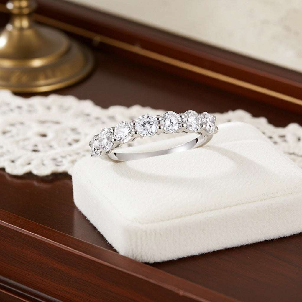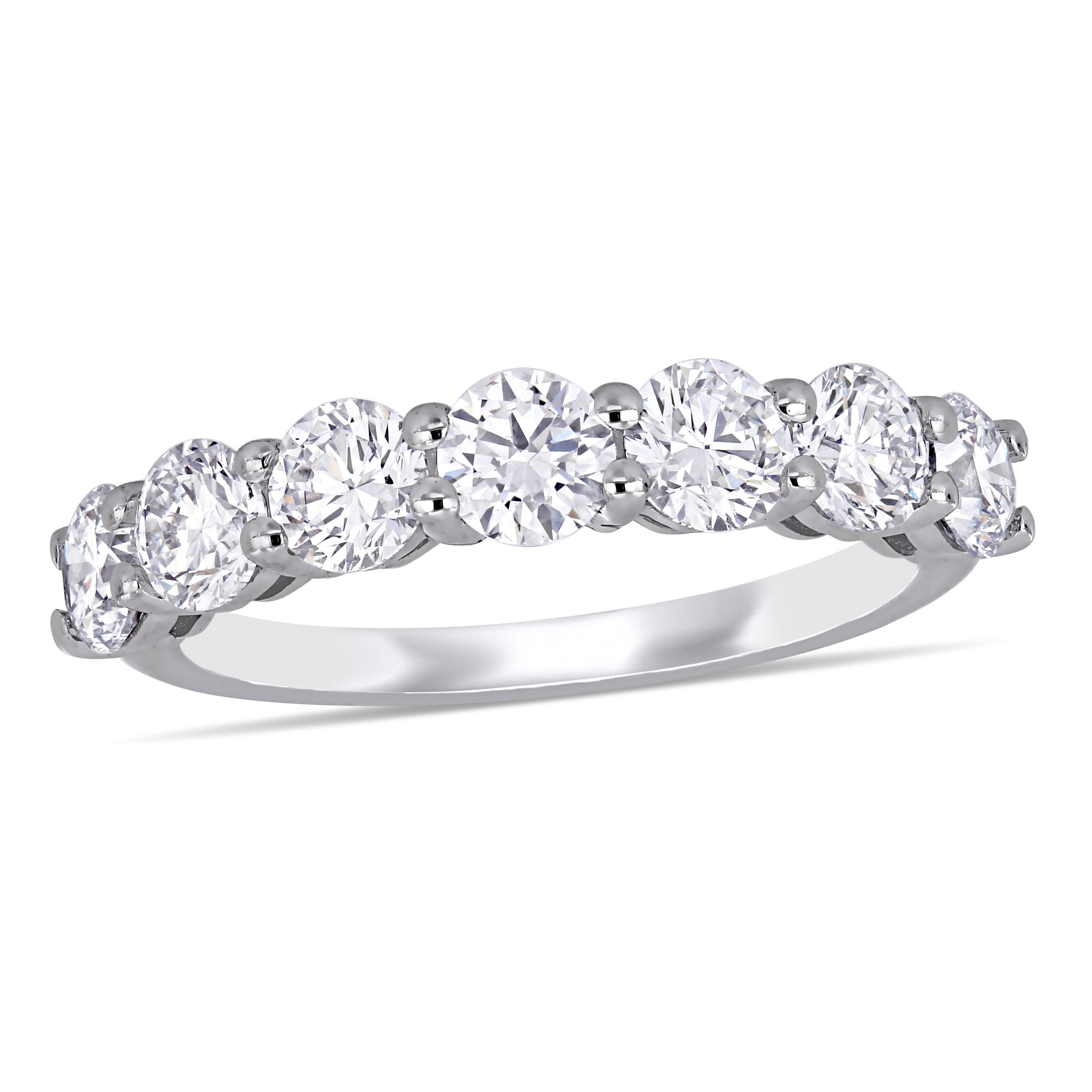 Dazzle everyone with this Lab-Grown Diamond Eternity Ring. Crafted in flickering white gold, it features seven round-cut, prong-set lab-created diamonds along half of the band forming a eternity band style. Polished to a brilliant shine, this lab-grown diamond ring is the perfect addition to any jewelry collection and makes a precious gift for your special someone.