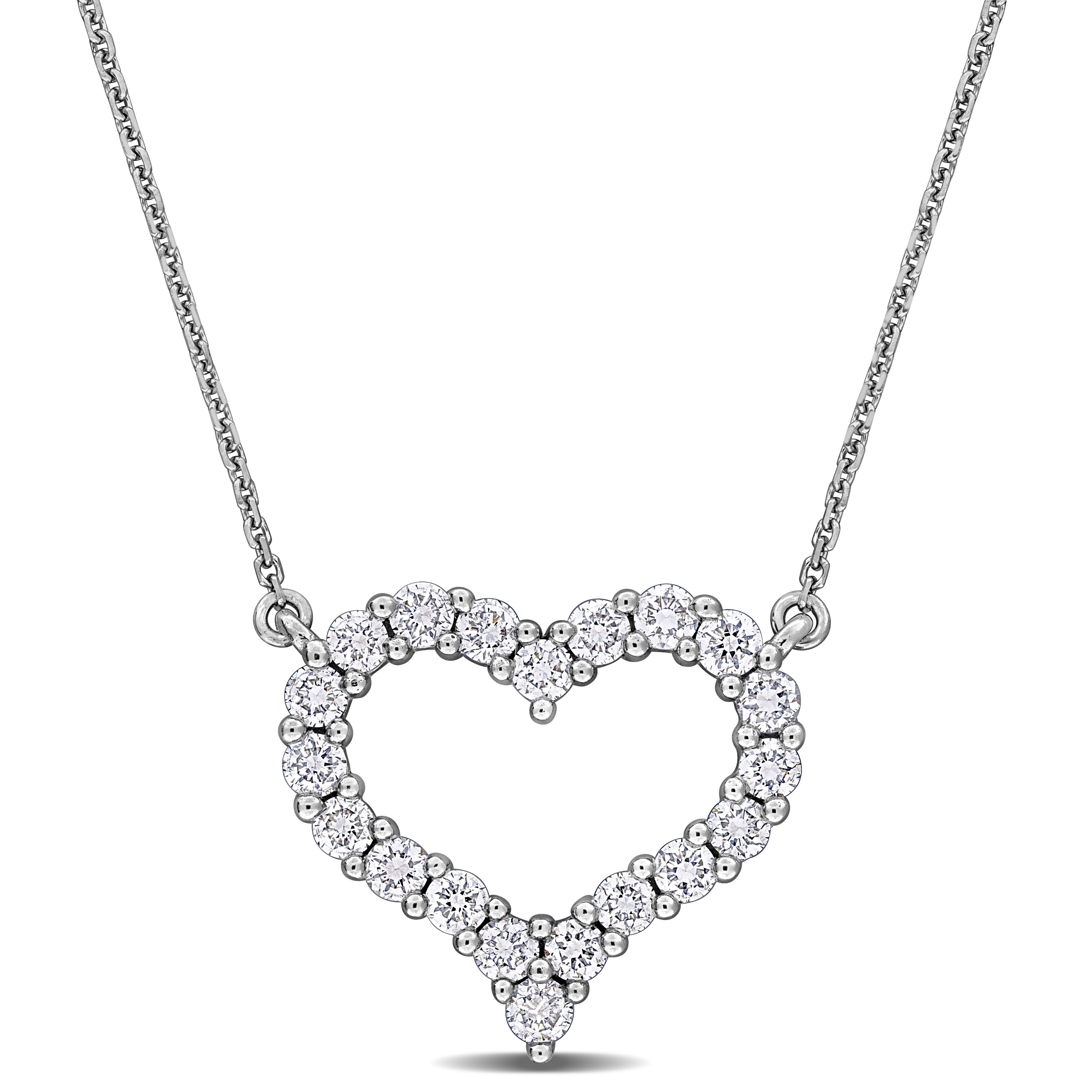 1ct TW Lab-Grown Diamond Open Heart Necklace in 14k White Gold