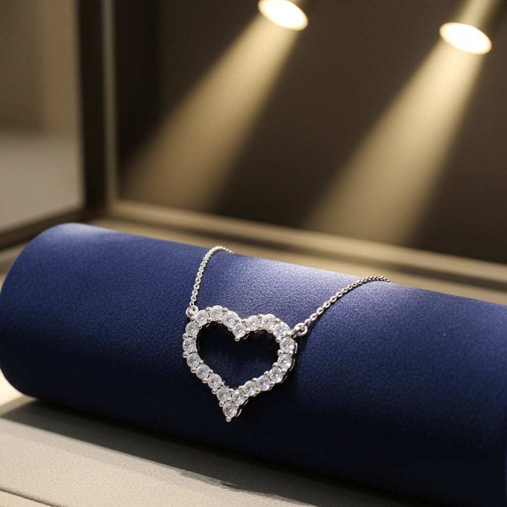 Embrace the beauty of affection with our Lab-Grown Diamond Heart Necklace, expertly crafted in 14k white gold. This elegant piece features an open heart design, beautifully outlined with brilliant lab-grown diamonds that capture and reflect light with every movement. The 17-inch chain complements the pendant perfectly, ensuring that it sits gracefully at the collarbone. Ideal for romantic gestures, special occasions, or as a daily reminder of love.