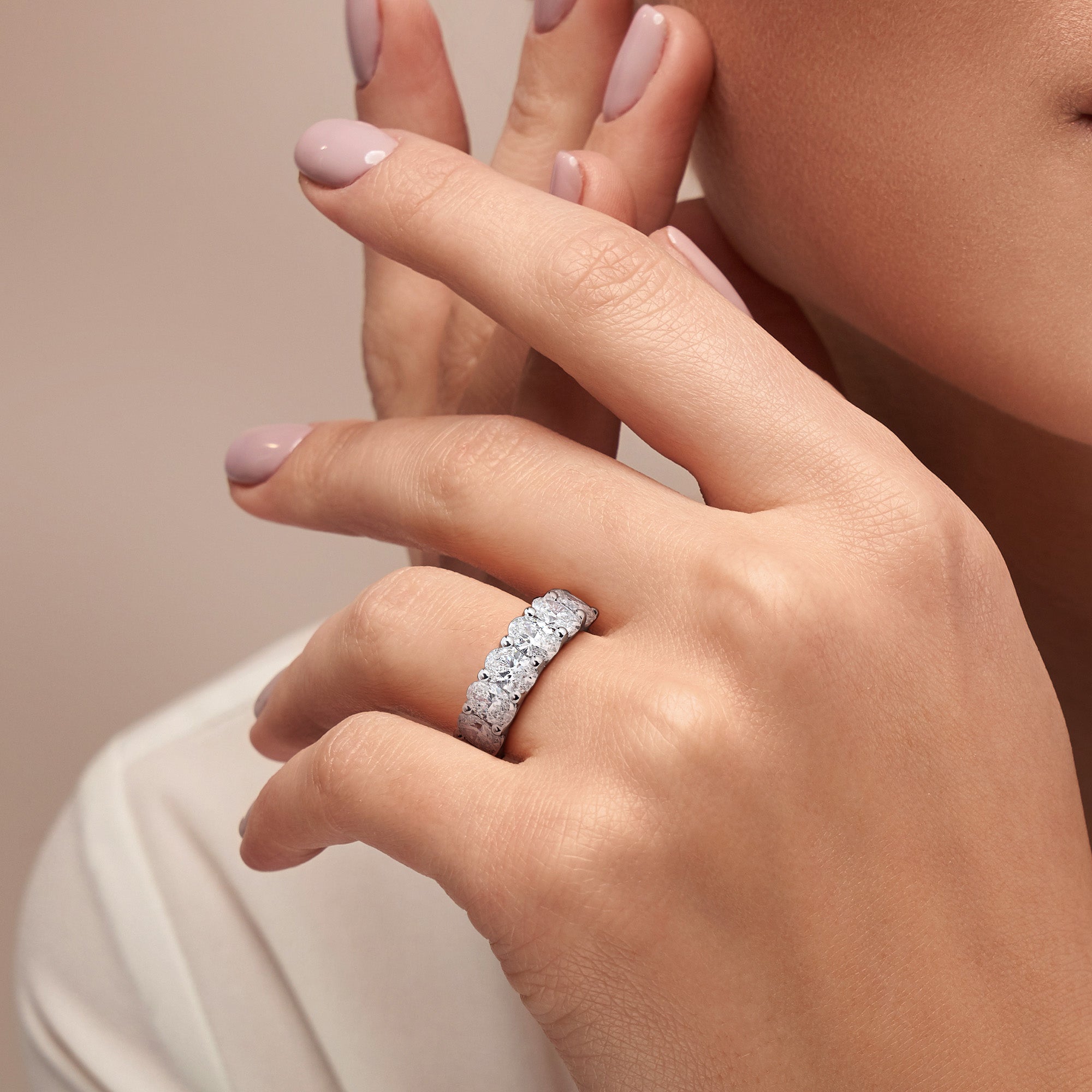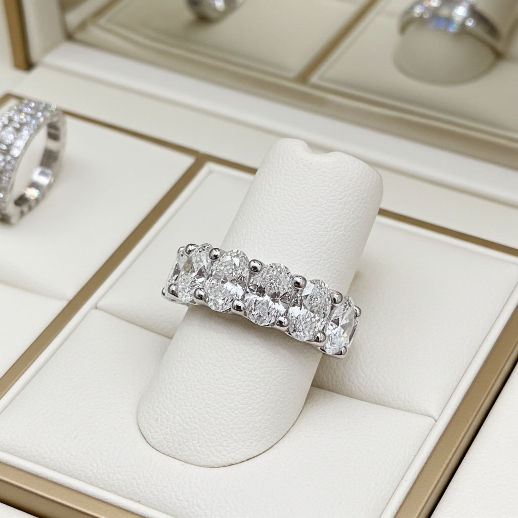 Indulge in the timeless allure of this exquisite Oval-Cut Lab-Grown Diamond 7-Stone Anniversary Band, crafted in luxurious 14k White Gold. Featuring seven dazzling oval-cut lab-grown diamonds, each stone is meticulously set along the band to create a stunning display of brilliance and fire. The clean lines and classic design of this ring make it a perfect symbol of everlasting love and commitment. Whether worn alone or paired with an engagement ring, this anniversary band is sure to captivate hearts and inspire admiration for years to come.