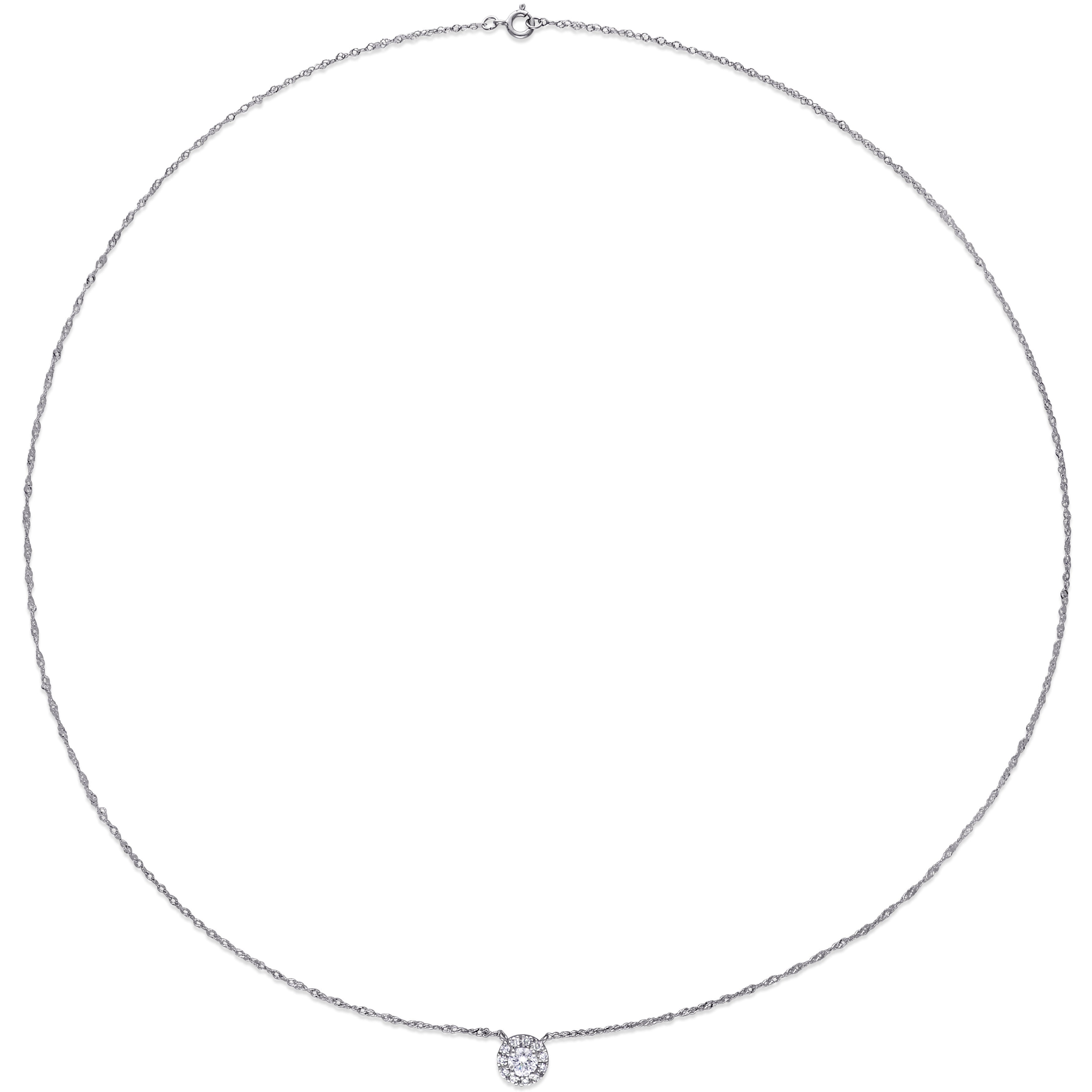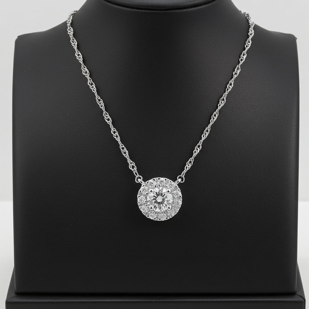3/8ct TW Lab-Grown Diamond Halo Necklace in 14k White Gold