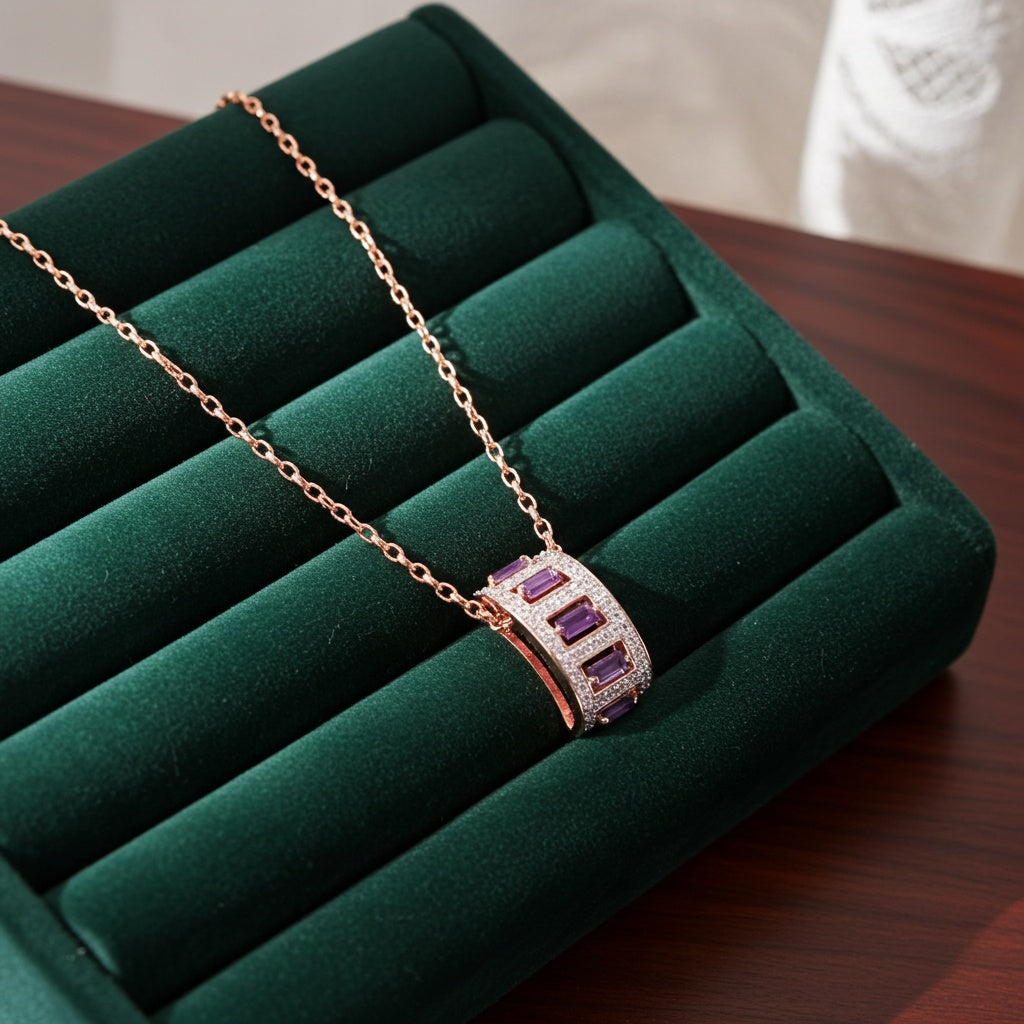 Amethyst & White Topaz Pendant Necklace in Rose Plated Silver