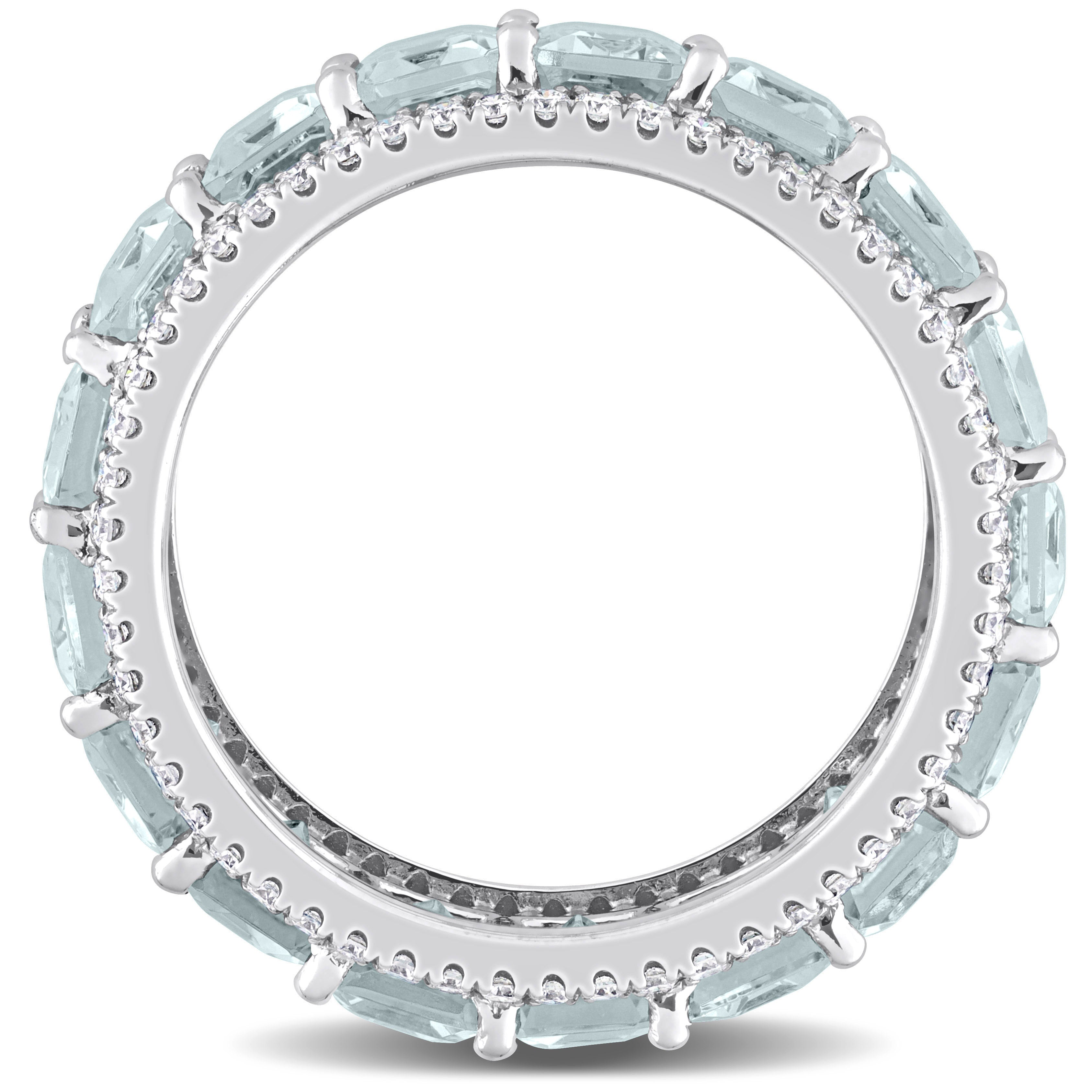 Aquamarine & 5/8ct CT TW Diamond Eternity Ring in 14k White Gold