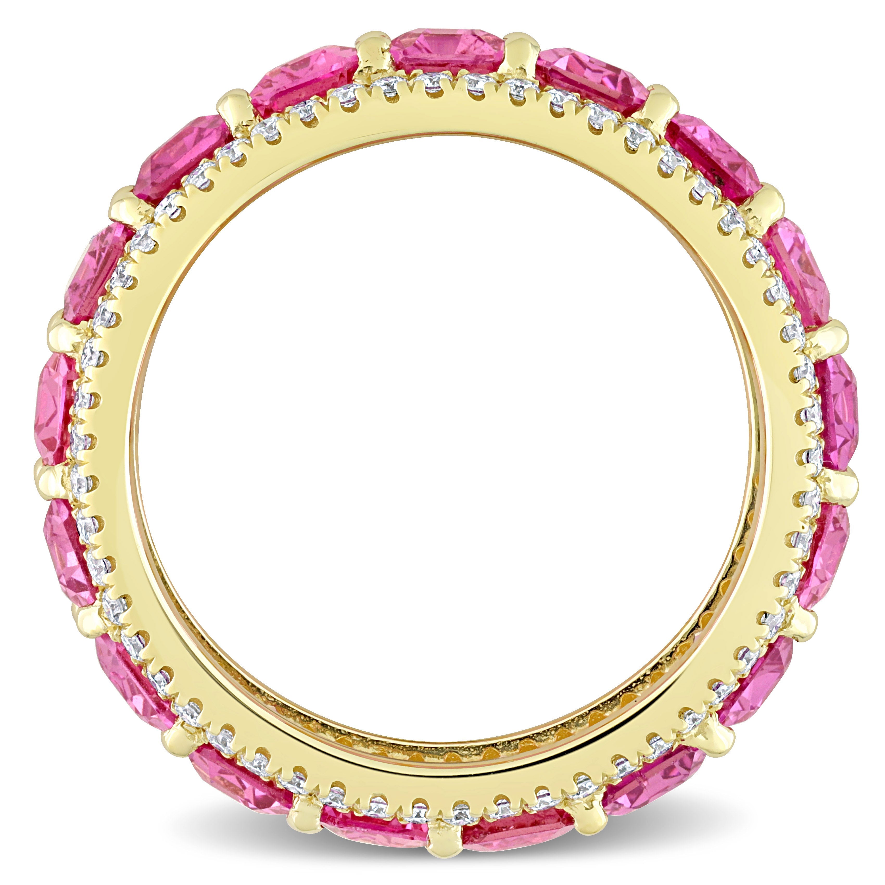 Pink Sapphire & 5/8 CT TW Diamond Eternity Ring in 14k Yellow Gold