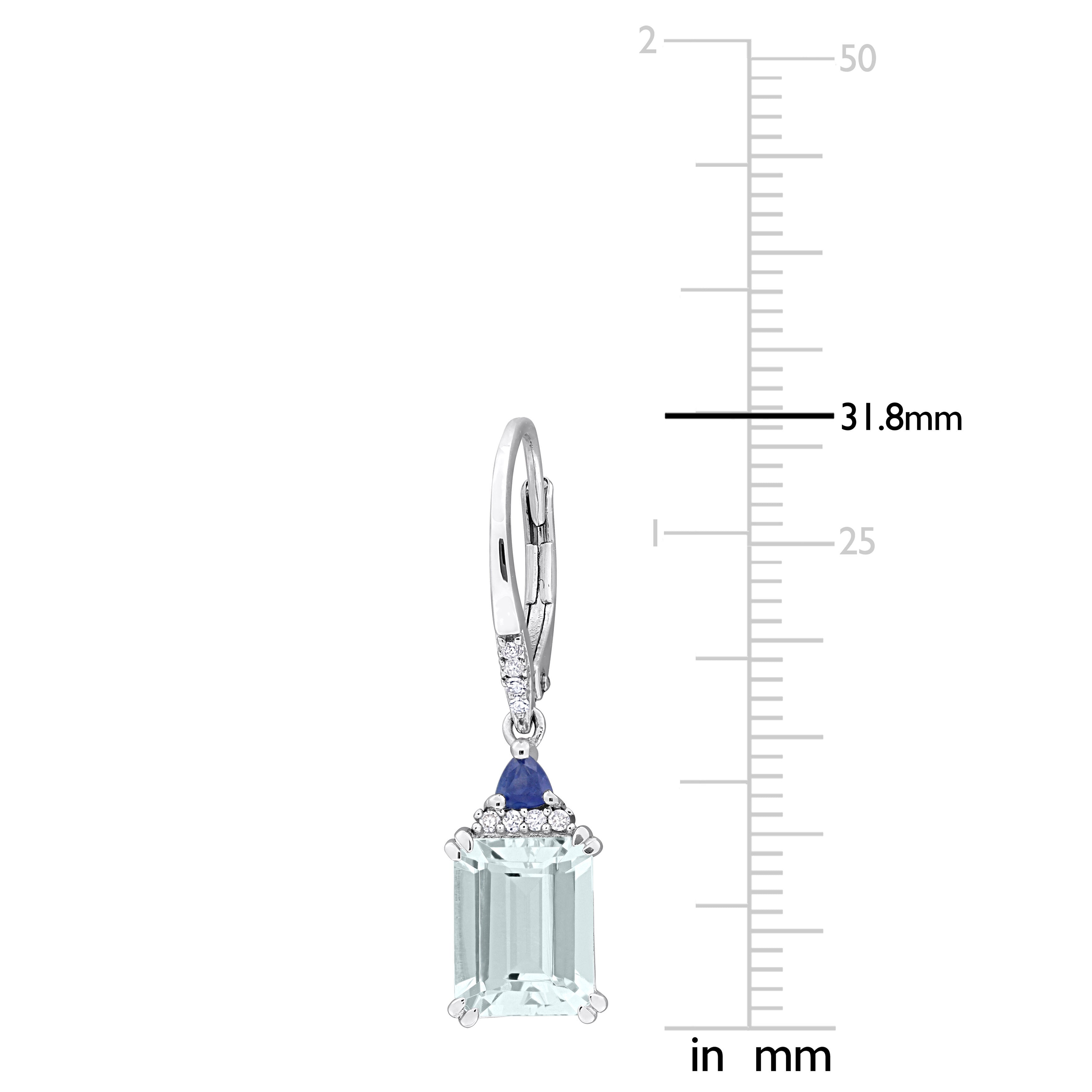 Sapphire & Aquamarine with 1/10ct TW Diamond Leverback Earrings in Sterling Silver
