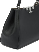 Elevate your everyday style with this sophisticated black calf leather shoulder bag from Tory Burch. Crafted from premium solid-colored leather, this structured silhouette features a refined top handle and timeless design that effortlessly transitions from the office to evening engagements.