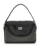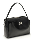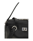 Crafted from supple black leather, this structured silhouette features a signature turn-lock closure and an adjustable shoulder strap for versatile wear. The compact yet spacious design makes it perfect for carrying your essentials from day to night, whether you're heading to the office or meeting friends for dinner.